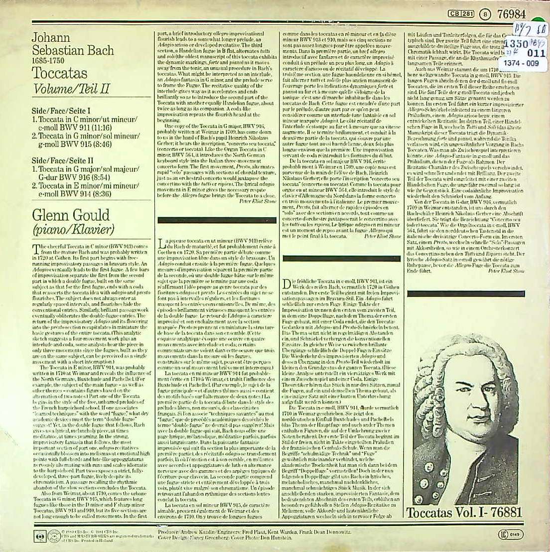 商品詳細:グールドのバッハ/トッカータは全7曲で全集録音している。パルティータより後の年代の割に品物が多くない。2枚別々の番号で別々の年に発売された。独プレスの方がやや太めのふっくらした音になる。シャープさを求める方には米プレスが良い。このトッカータという曲自体がグールドにとって格好の題材とも言え、自在に料理し甲斐のある材料だろう。その為、バッハの音というよりも彼のピアニズムの研究の成果を世に問う場となっているのかもしれない。それだけに彼らしさが味わえるセット。米、独の音質比べとしても面白い。欧州盤としてはVol.2は希少!グールドのトッカータは3つの時期に分かれて録音。最初が1963年に5番BWV914の1曲のみニューヨークでパルティータ録音中にモノラル/ステレオ録音され、米国ではパルティータ3/4番とカップリングされ1963年米COLUMBIA:ML 5898/MS 6498(2eyesレーベル)にて初リリース。欧州では3曲とも未発売である。パルティータ全7曲中、1/3/4番の3曲が1976年10月-11月カナダ・トロント・イートン・オーディトリアムでのステレオ録音され、1979年トッカータ全集-1として米国、カナダ、ドイツ、オランダから発売、最後の3曲である2/6/7番が1979年5、6月カナダ・トロント・イートン・オーディトリアムでステレオ録音され、そこに1963年の既音源である5番がカップリングされ、米国、カナダで1980年、ドイツ、オランダで1981年トッカータ全集-2としてそれぞれ発売された。オリジナルだけでも最低4種が存在することになる。それぞれに異なる音質があるので、お好みを見つけることが一番。欧州プレスは米国、カナダに比べ柔らかい音質である。欧州盤はそこまで希少ではないので、時間が掛かっても希望のプレスが出てくるまで待つ事をお薦めする。グールドの晩年録音にさしかかり、唯一無二のスタイルでの演奏が展開する。他のピアニストのトッカータ集とは大きく異なるので、ファンだけの愉しみと言えよう。