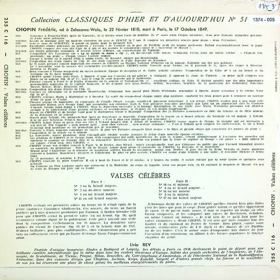 商品コード:1374-005[Ducretet Thomson] L.レーフ(pf) / ショパン:ワルツ(抜粋9曲)/1~3番, 6&7番, 10&11番, 14番, 17番