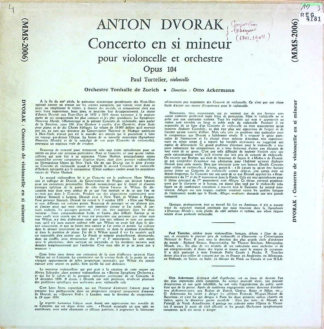 商品コード:REG-4181p[仏GUILDE du DISQUE] P.トルトゥリエ(vc)/ ドヴォルザーク:Vc協奏曲Op.104