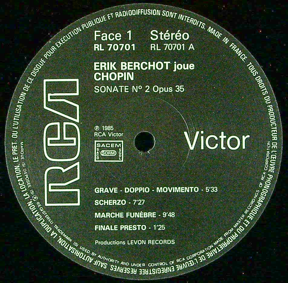 商品コード:REG-4179p[仏RCA] E.ベルショ(pf) / ショパン:Pfソナタ2番Op.35, ポロネーズ6番Op.53「英雄」, マズルカ1番, 4番, スケルツォ2番Op.31