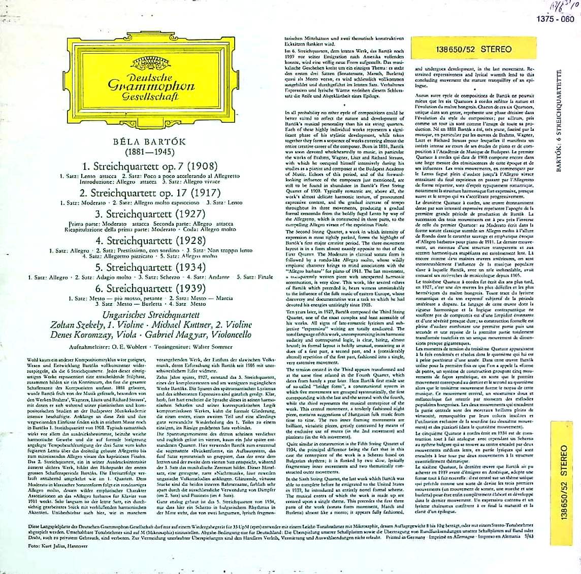 商品コード:1375-060[DGG] ハンガリーQt. / バルトーク:弦楽四重奏曲(全6曲)