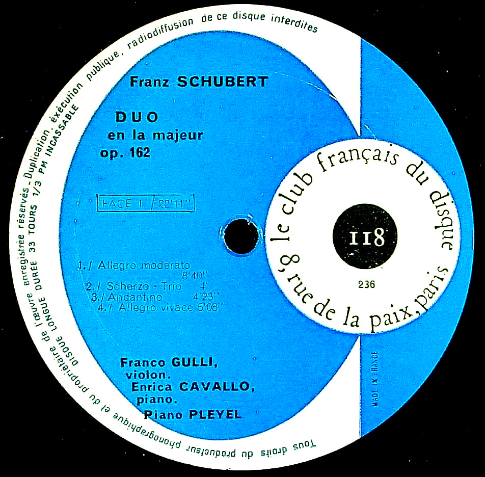 商品コード:1375-047nc[Club Français] F.グッリ(vn)/ シューベルト:VnとPfのための二重奏曲Op.162, Vnソナチネ2番Op.137-2