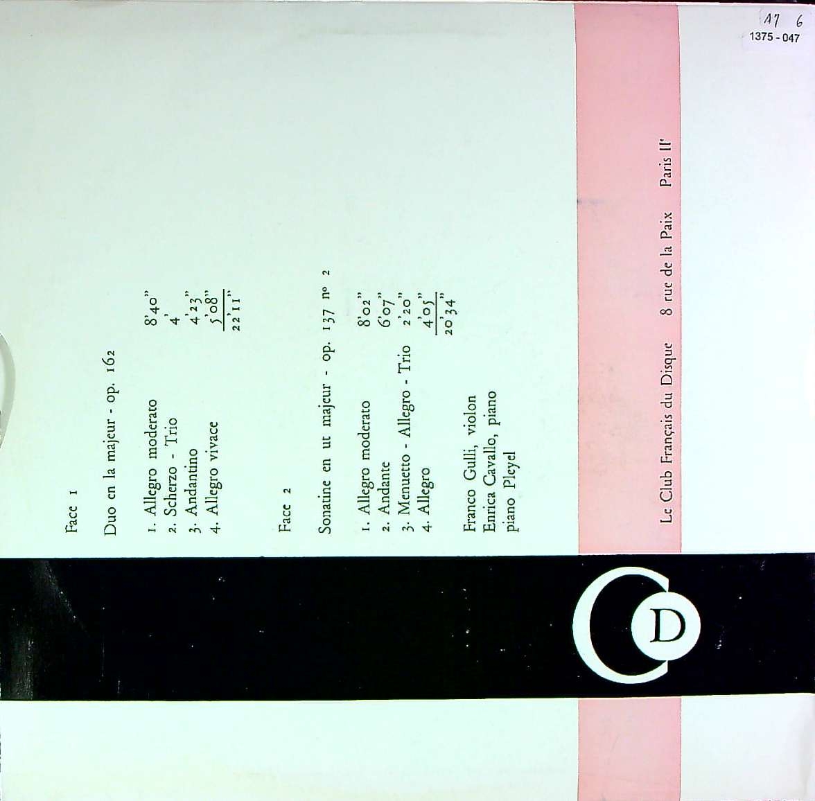 商品コード:1375-047[Club Français] F.グッリ(vn)/ シューベルト:VnとPfのための二重奏曲Op.162, Vnソナチネ2番Op.137-2