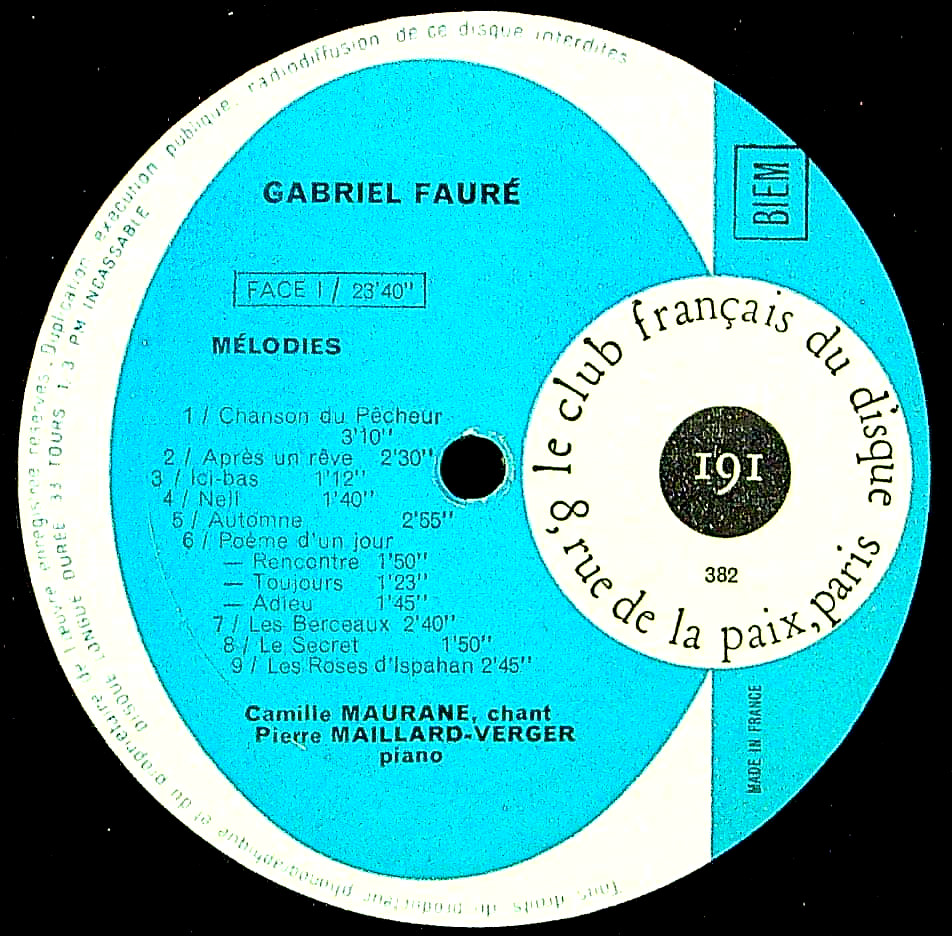 商品コード:1375-045[Club Français] C.モラーヌ(br)/ フォーレ:歌曲集(20曲)