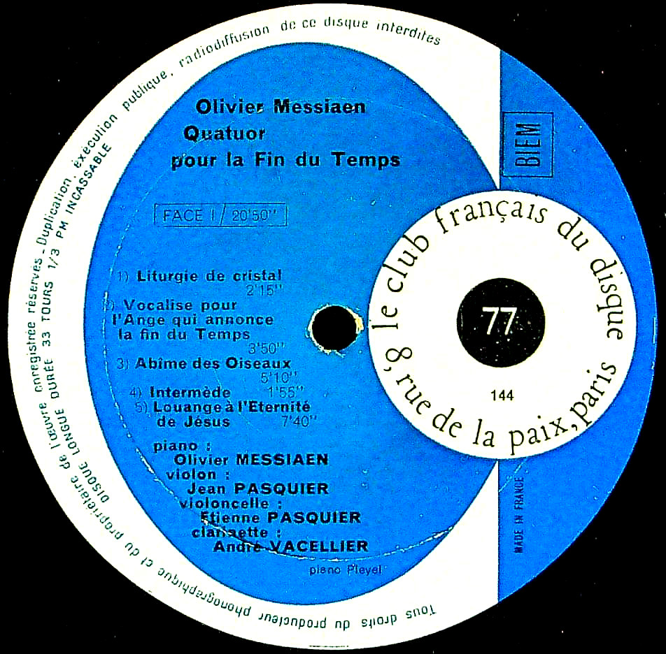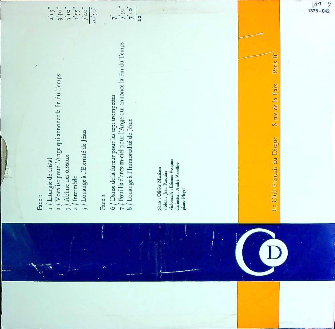 商品コード:1375-042[Club Français] O.メシアン J&E.パスキエ A.ヴァセリエ/ メシアン:世の終りのための四重奏曲
