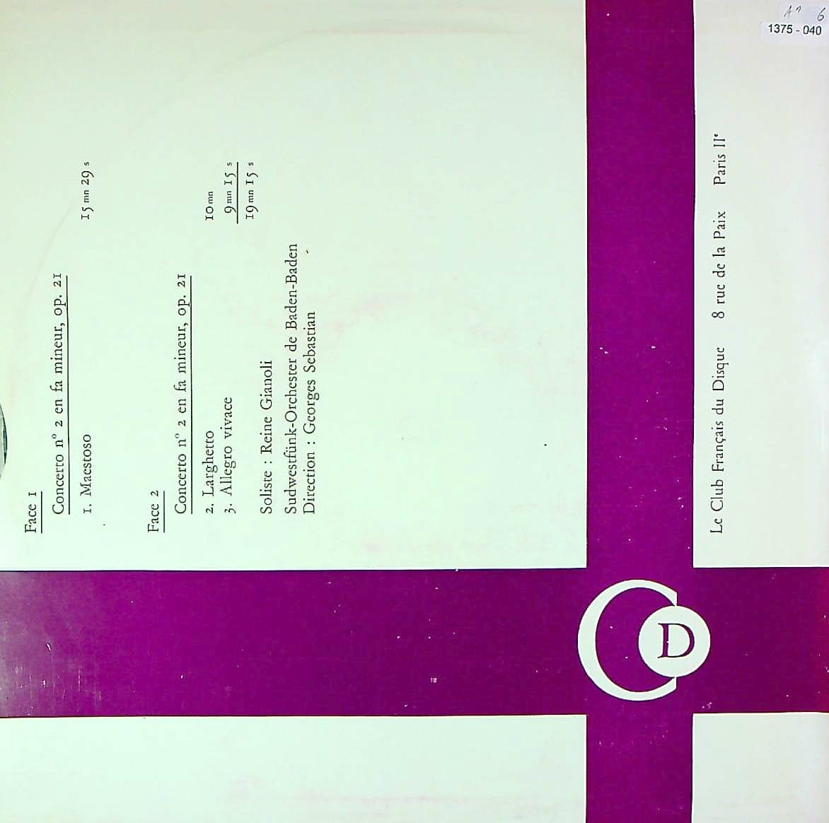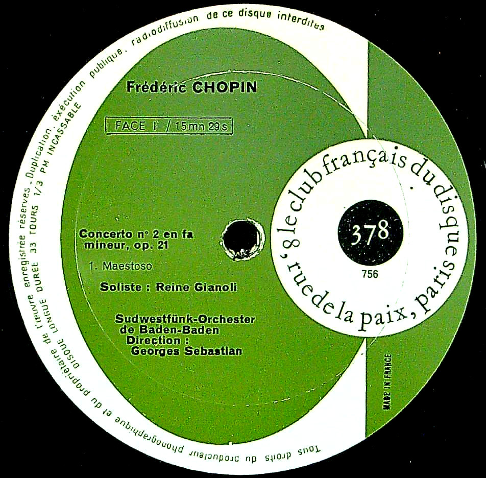 商品コード:1375-040[Club Français] R.ジャノリ(pf)/ ショパン:Pf協奏曲2番Op.21