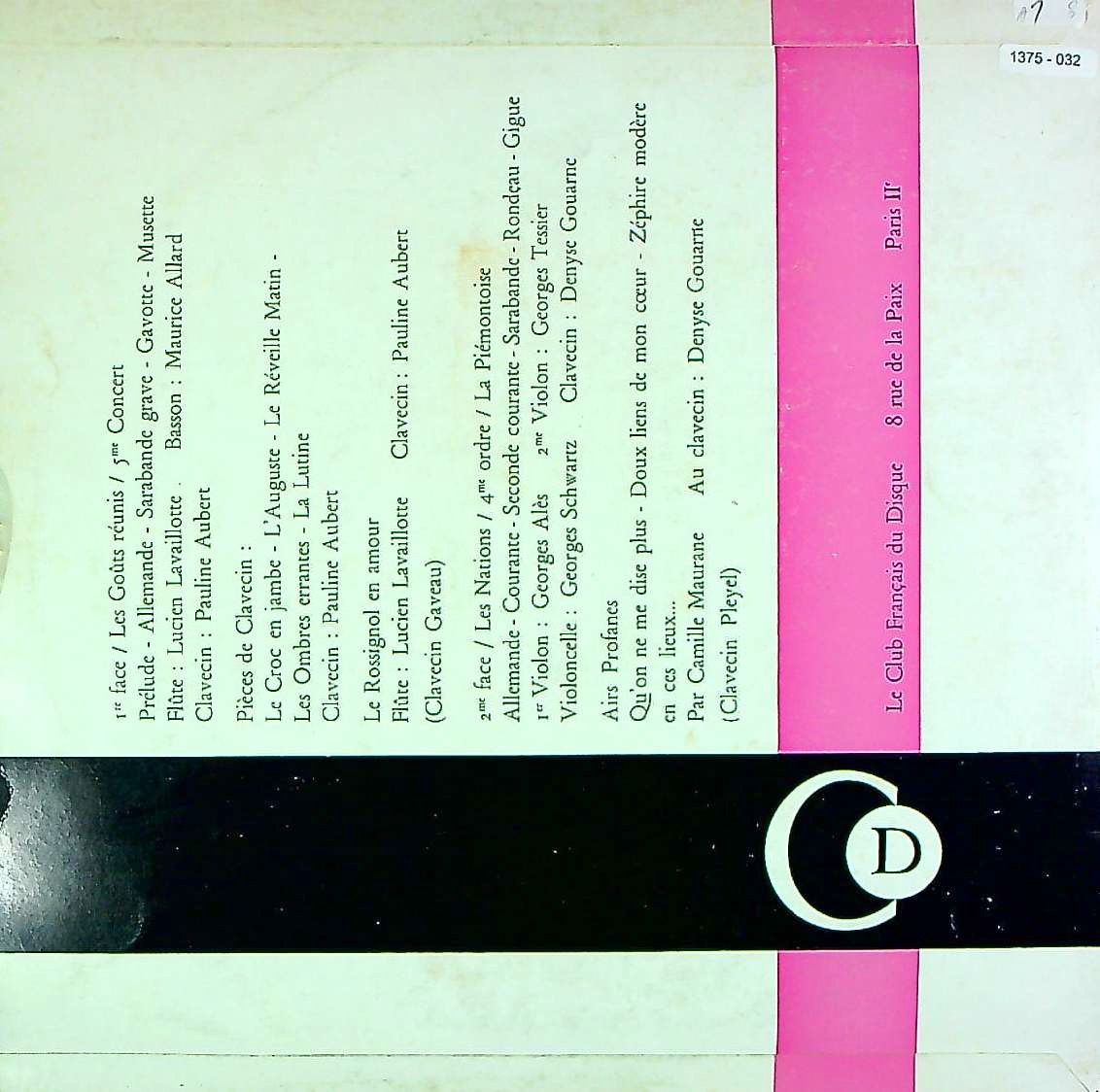 商品コード:1375-032[Club Français] R.ジェルリン, P.オーベール, D.ゴラーヌ(cemb) 他/ F.クープラン:趣味の融合~5番 他