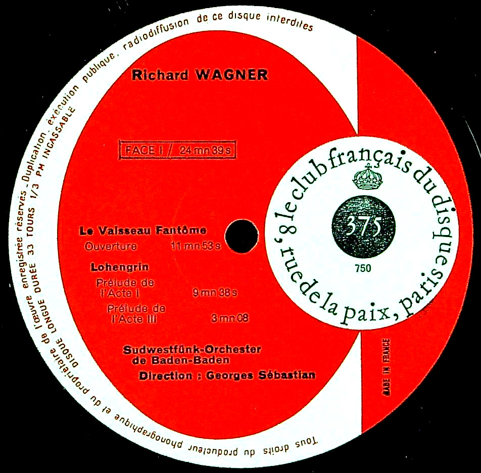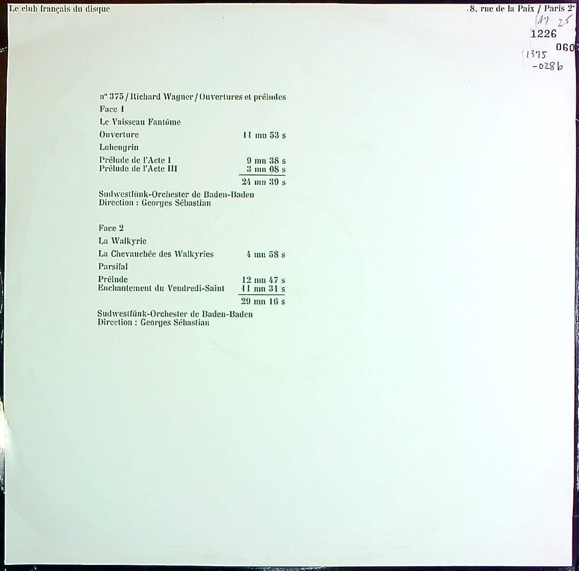 商品コード:1375-028b[Club Français] G.セバスティアン/ ワーグナー:序曲・前奏曲集/オランダ人, ローエングリン, パルジファル, ワルキューレの騎行