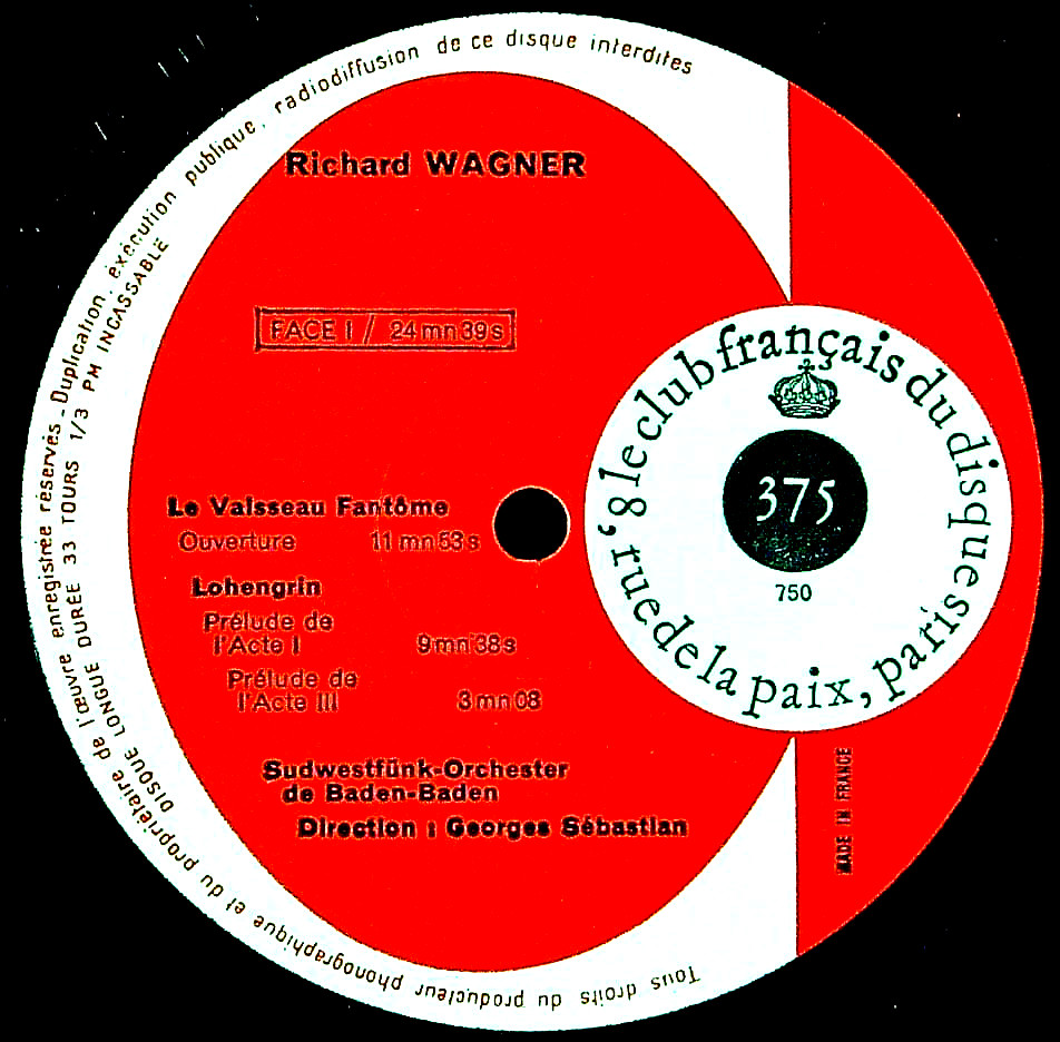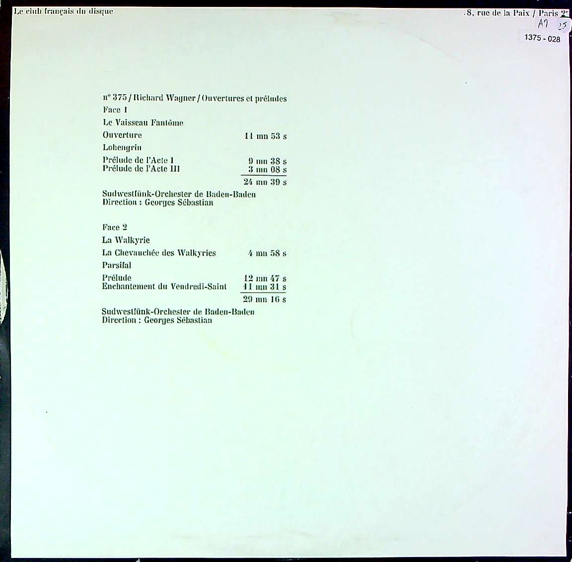 商品コード:1375-028[Club Français] G.セバスティアン/ ワーグナー:序曲・前奏曲集/オランダ人, ローエングリン, パルジファル, ワルキューレの騎行