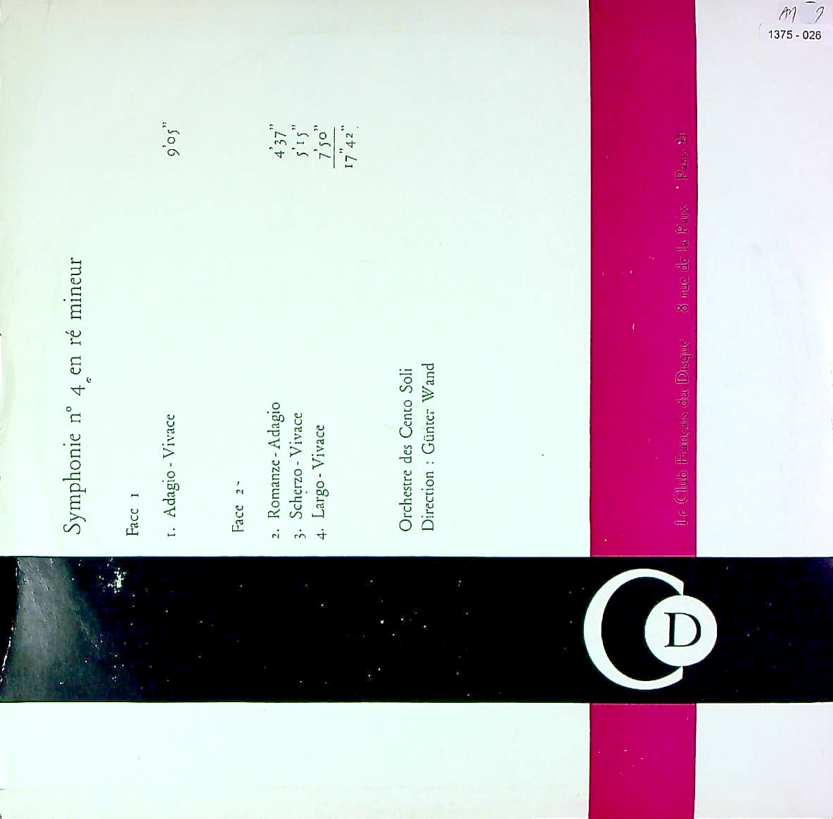 商品コード:1375-026[Club Français] G.ヴァント/ シューマン:交響曲4番Op.120