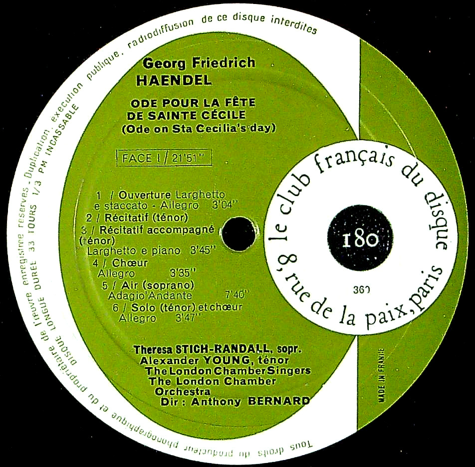 商品コード:1375-023[Club Français] T.シュティヒ・ランダル(s)/ ヘンデル:聖チェチリアの祝日のための頌歌