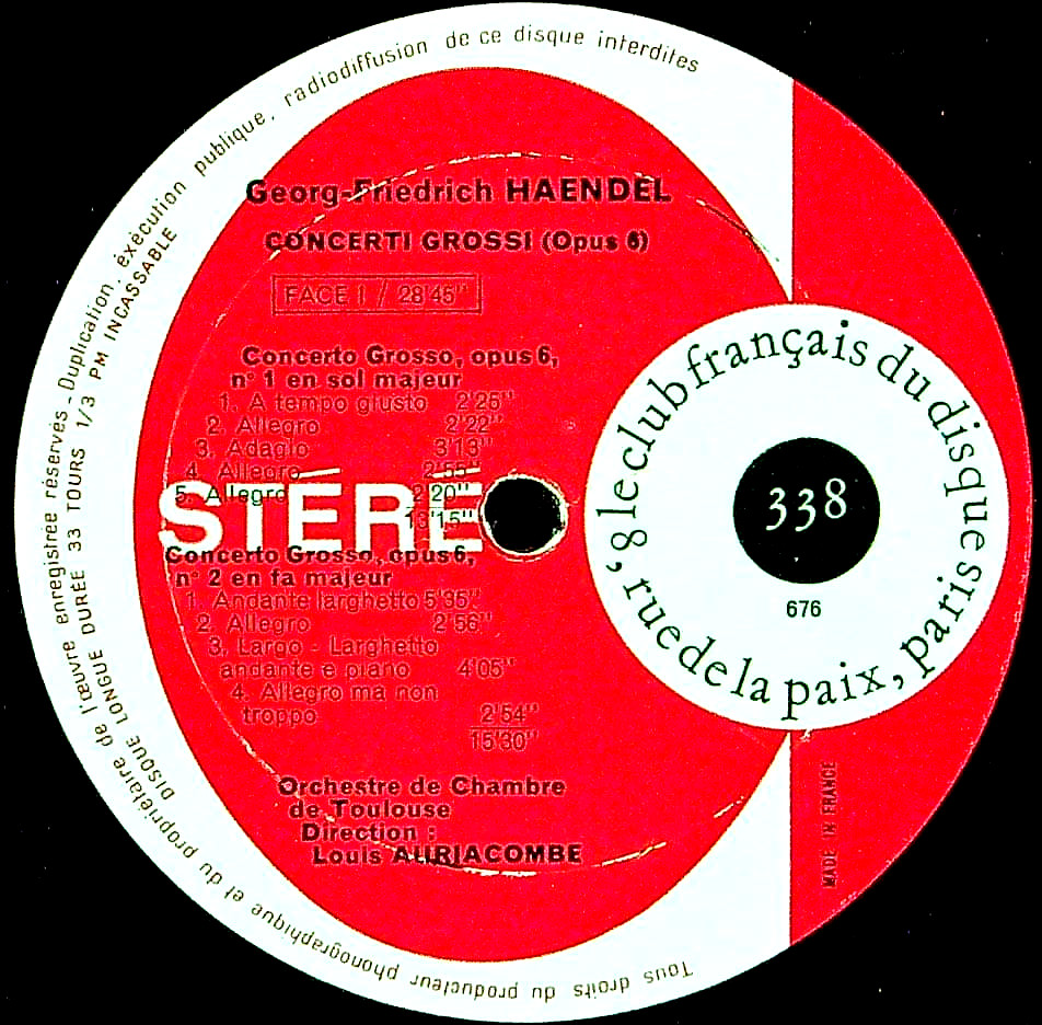 商品コード:1375-021[Club Français] L.オーリアコンブ/ ヘンデル:合奏協奏曲Op.6 HWV 319-330(全12曲)