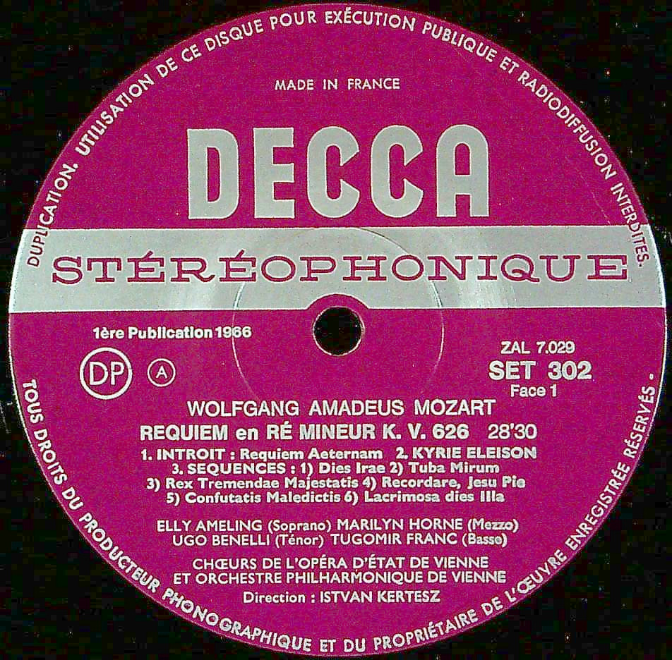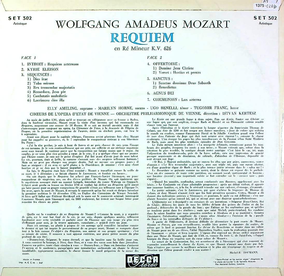 商品コード:1375-020b[DECCA] I.ケルテス指揮 E.アーメリング(s) 他/ モーツァルト:レクイエムK.626(ジュスマイヤー版)