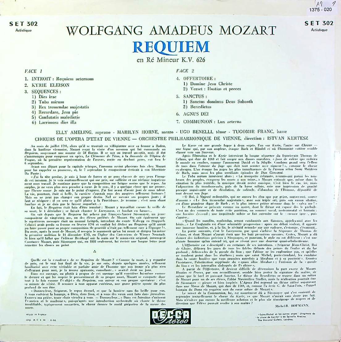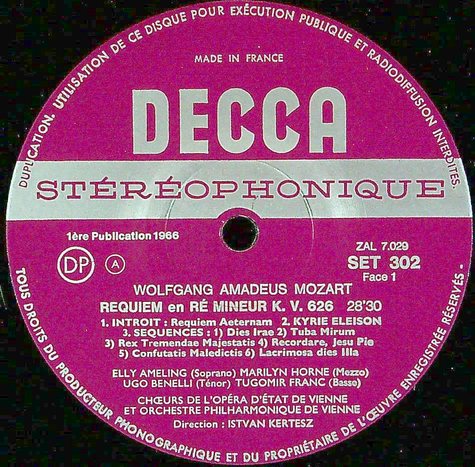 商品コード:1375-020[DECCA] I.ケルテス指揮 E.アーメリング(s) 他/ モーツァルト:レクイエムK.626(ジュスマイヤー版)