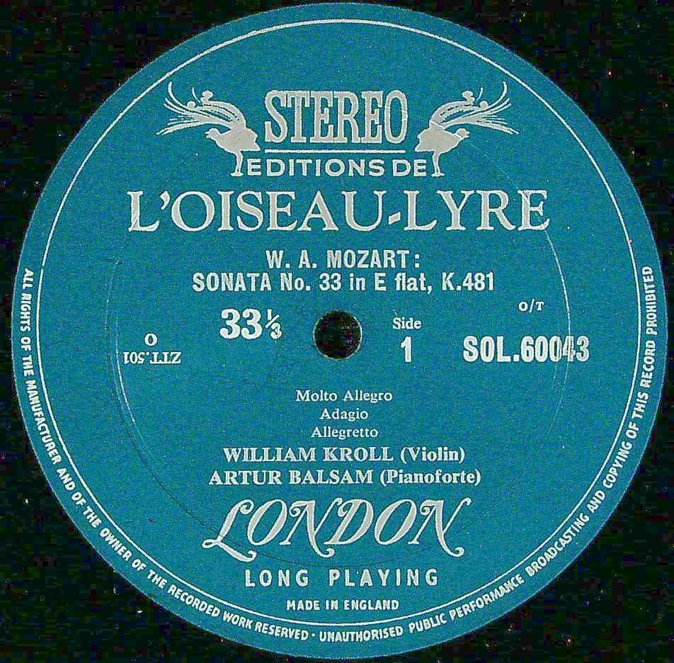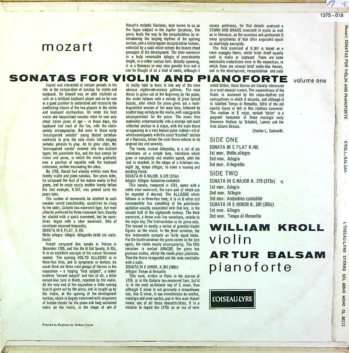 商品コード:1375-018[L'OISEAU LYRE] W.クロール(vn) / モーツァルト:Vnソナタ集Vol.1/ Vnソナタ33番K.481, 27番K.379, 21番K.304