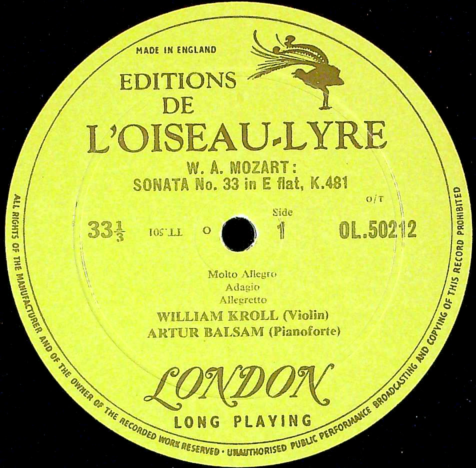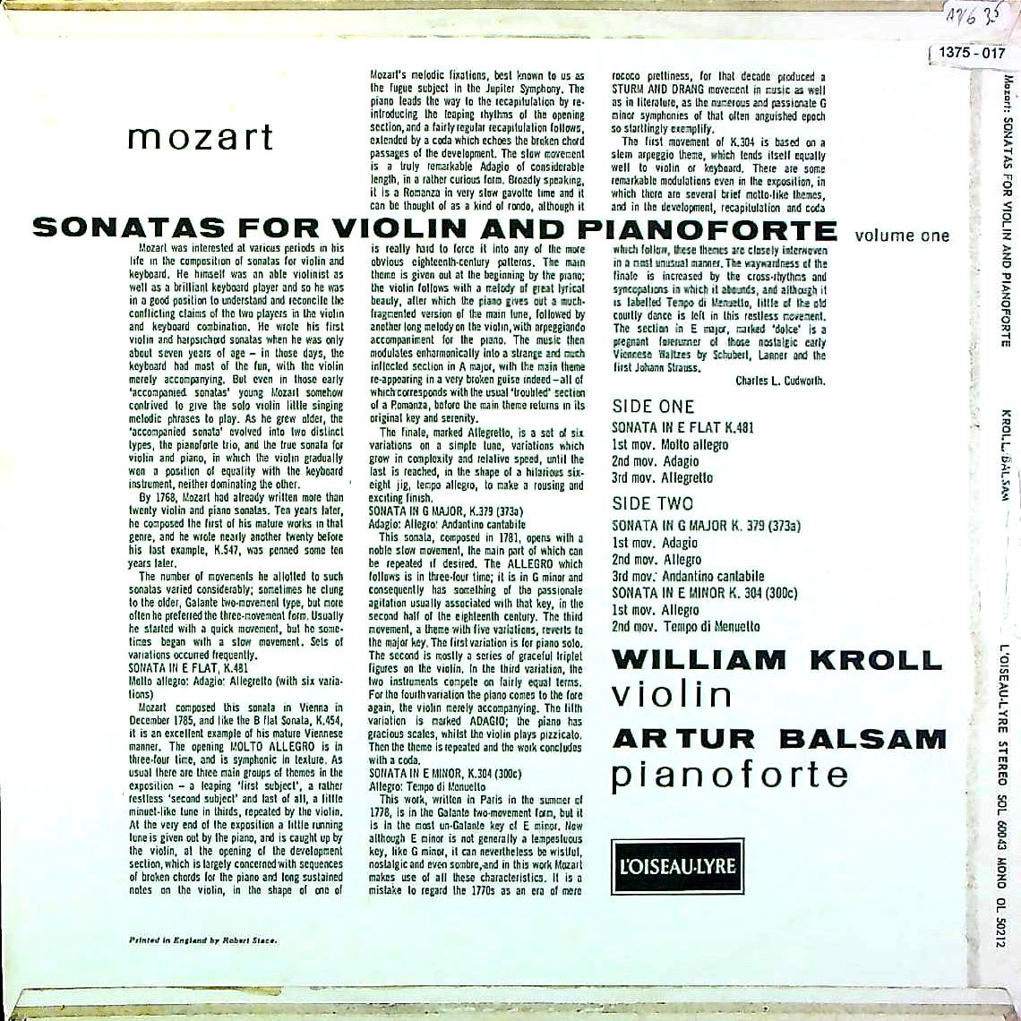 商品コード:1375-017[L'OISEAU LYRE] W.クロール(vn) / モーツァルト:Vnソナタ集Vol.1/ Vnソナタ33番K.481, 27番K.379, 21番K.304