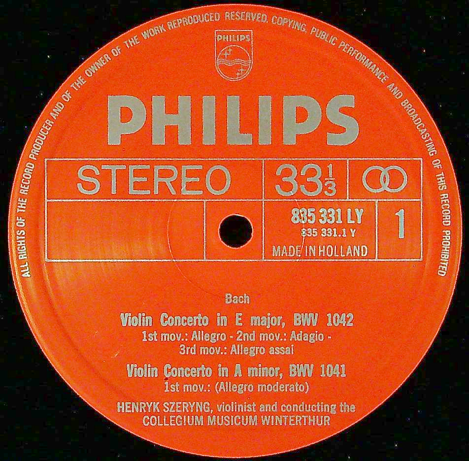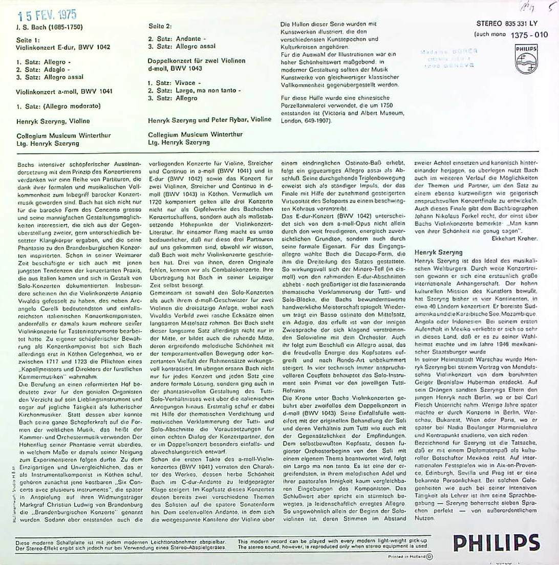 商品コード:1375-010[PHILIPS] P.リバール, H.シェリング(vn)/ バッハ:Vn協奏曲1番B.1041&2番B.1042, 2Vn協奏曲B.1043