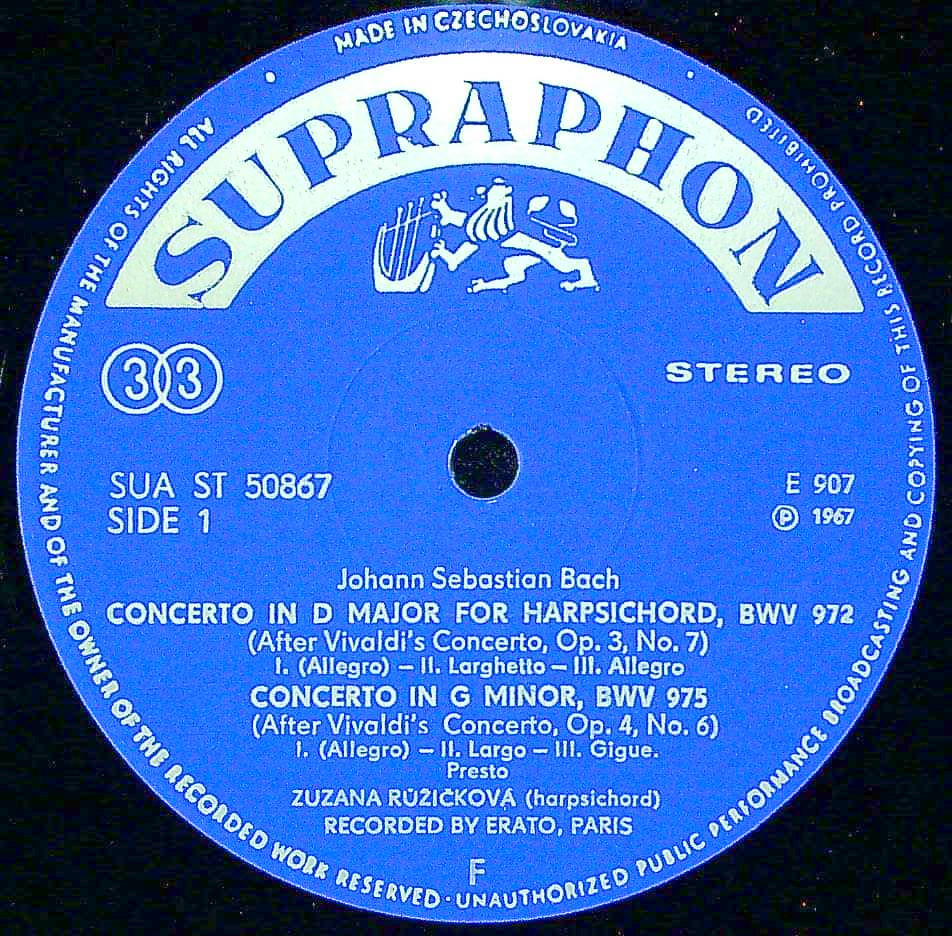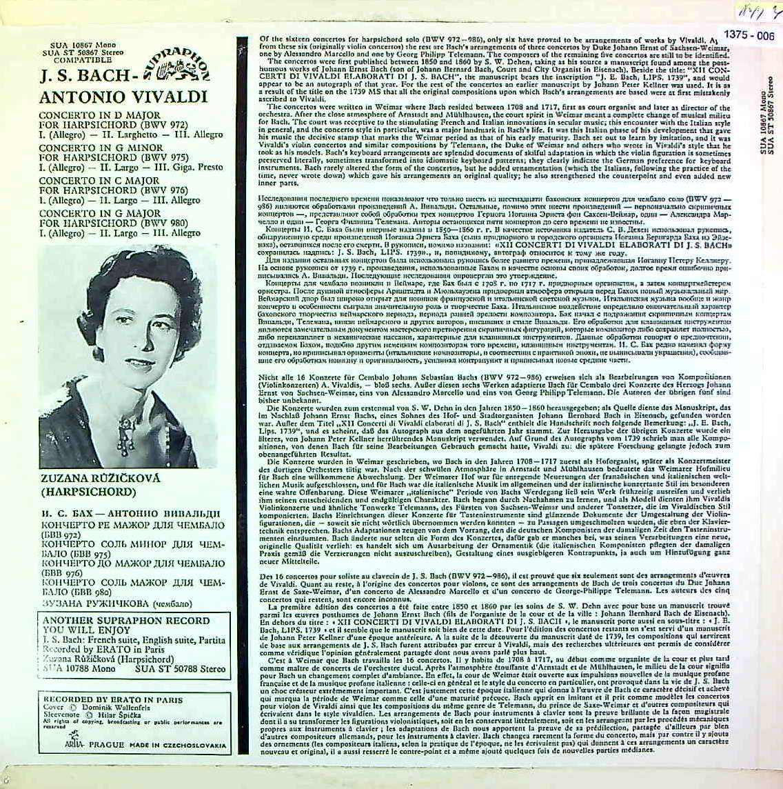 商品コード:1375-006n[SUPRAPHON] Z.ルージチコヴァー(cemb) / バッハ:クラヴィア協奏曲集/B.972, B.975, B.976, B.980