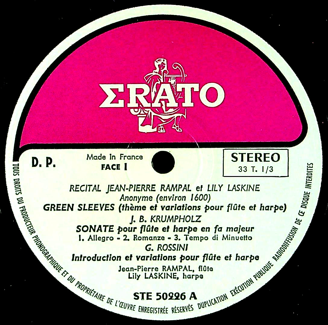 商品コード:1376-056[ERATO] J.P.ランパル(fl) L.ラスキーヌ(hp) / リサイタル/グリーンスリーブス, クルンプホルツ, ロッシーニ, フォーレ, イベール, ダマーズ