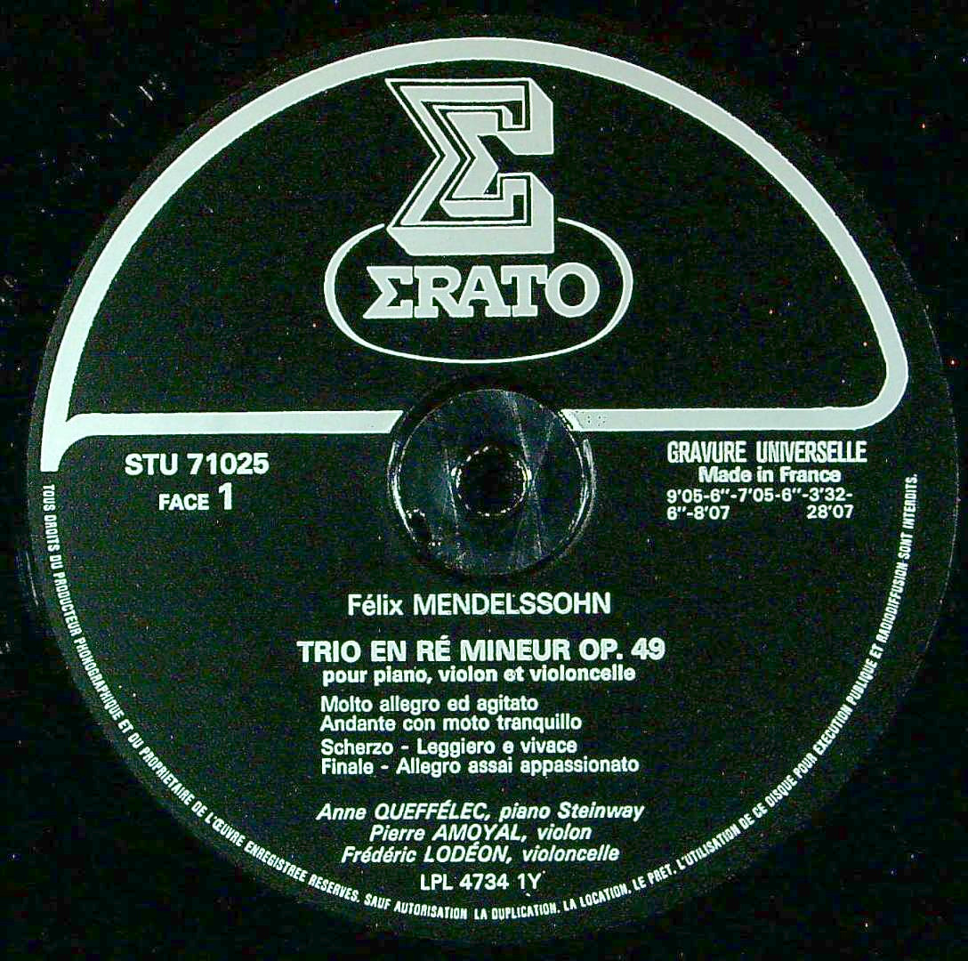 商品コード:1376-054[ERATO] A.ケフェレック(pf) P.アモイヤル(vn) F.ロデオン(vc) / メンデルスゾーン:Pf三重奏曲1番Op.49, Pf三重奏曲2番Op.66