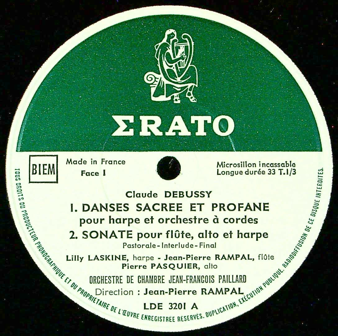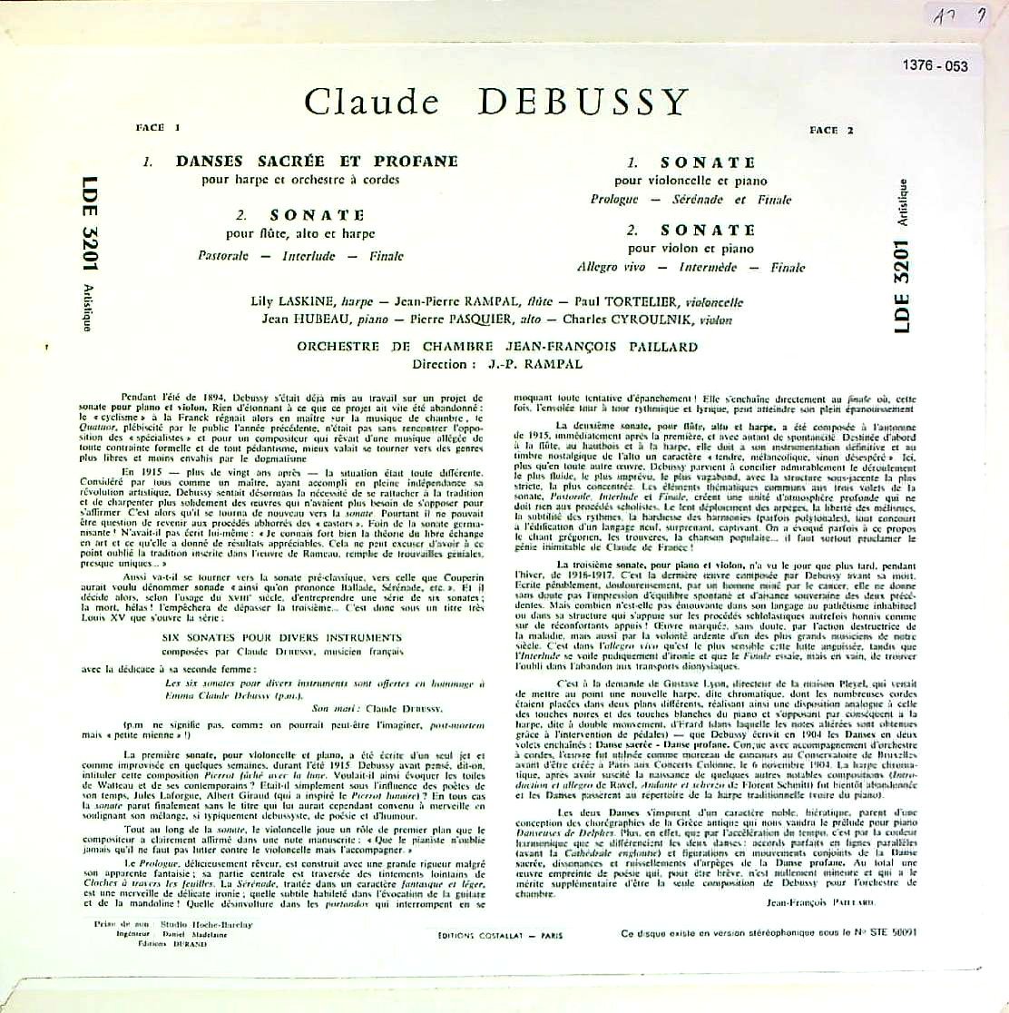 商品コード:1376-053[ERATO] L.ラスキーヌ(hp) P.トルトゥリエ(vc) 他/ ドビュッシー:神聖な踊りと世俗の踊り, Fl・Va・Hpのためのソナタ, Vcソナタ, Vnソナタ