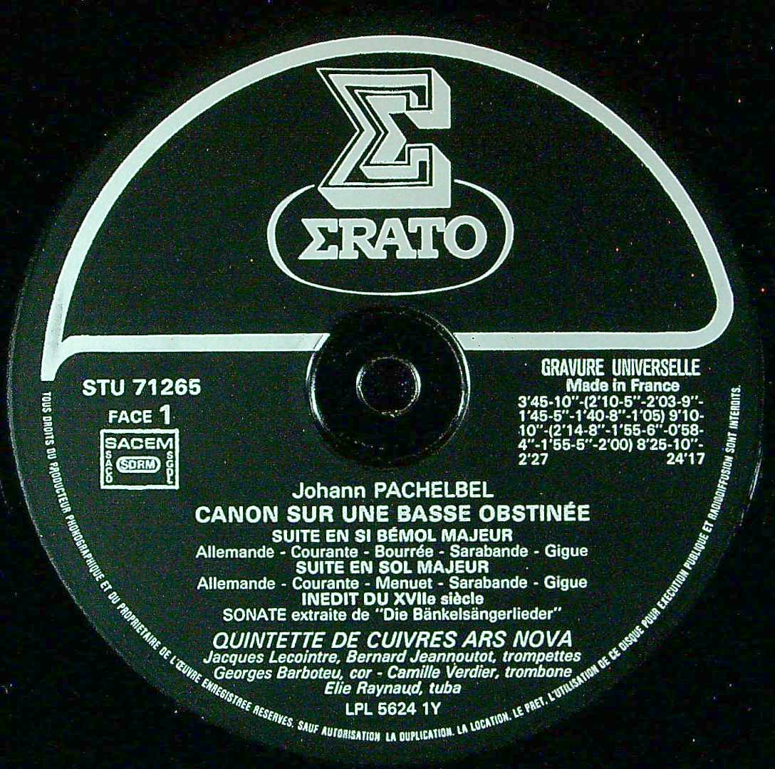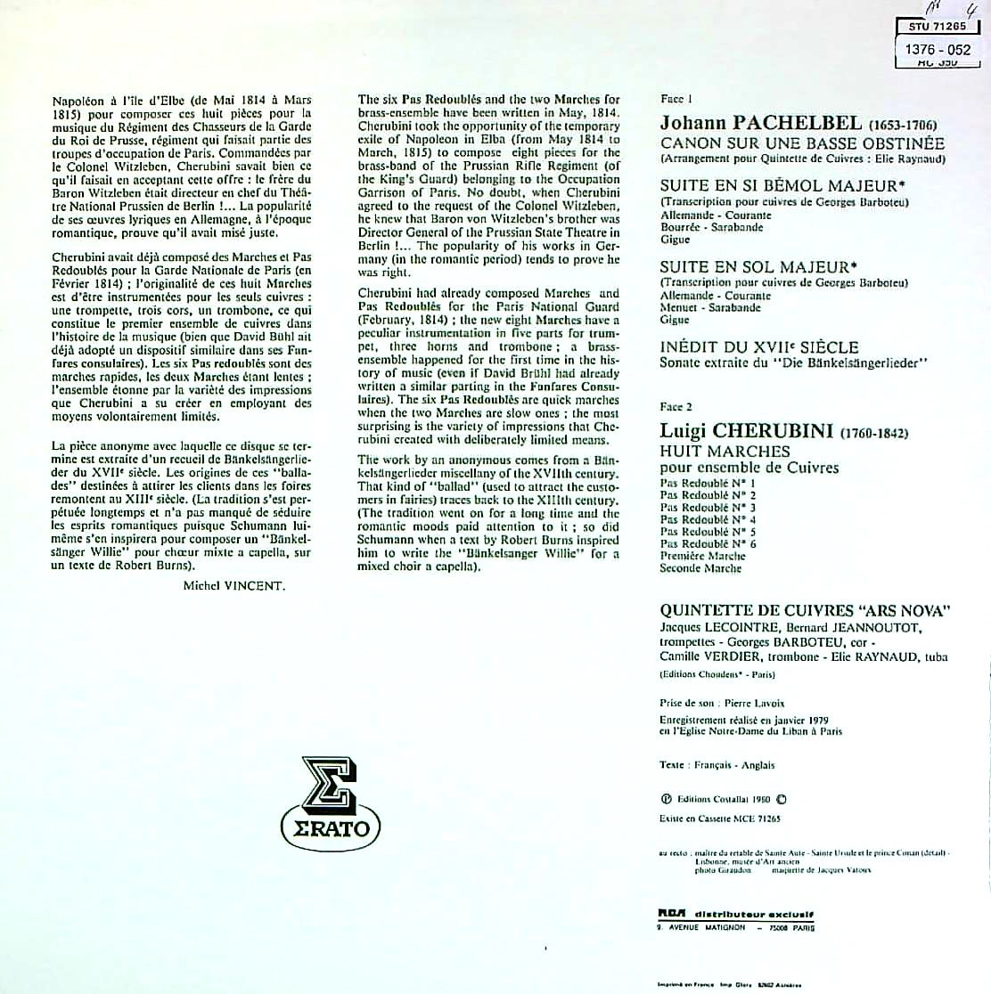 商品コード:1376-052[ERATO] アルス・ノヴァ金管五重奏団 / パッヘルベル:カノン, 組曲変ロ長調&ト長調, シュペーア:大道芸人の歌, ケルビーニ:8つの行進曲