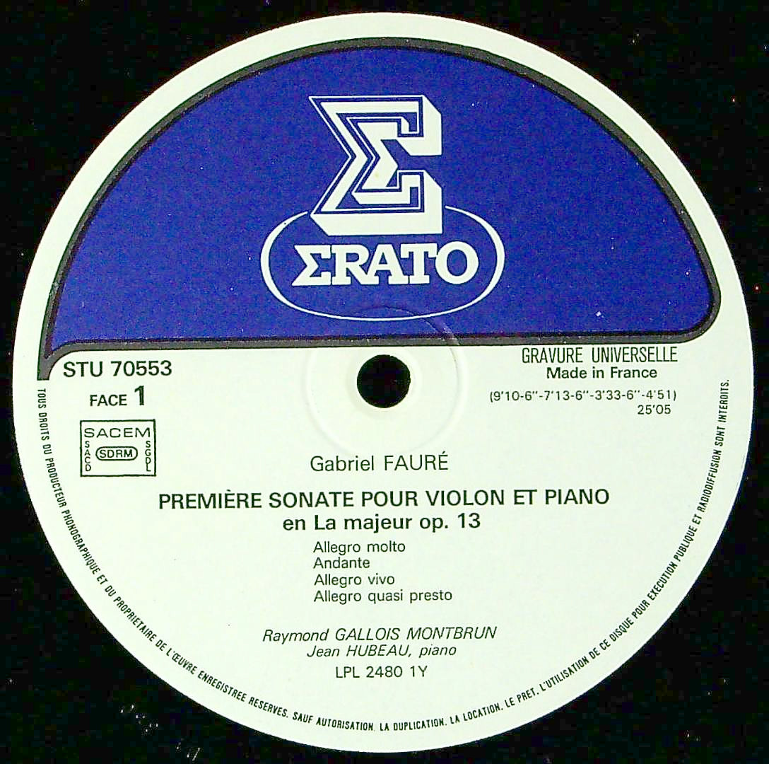 商品コード:1376-051[ERATO] R.ガロワ・モンブラン(vn)/ フォーレ:Vnソナタ1番, Vnソナタ2番