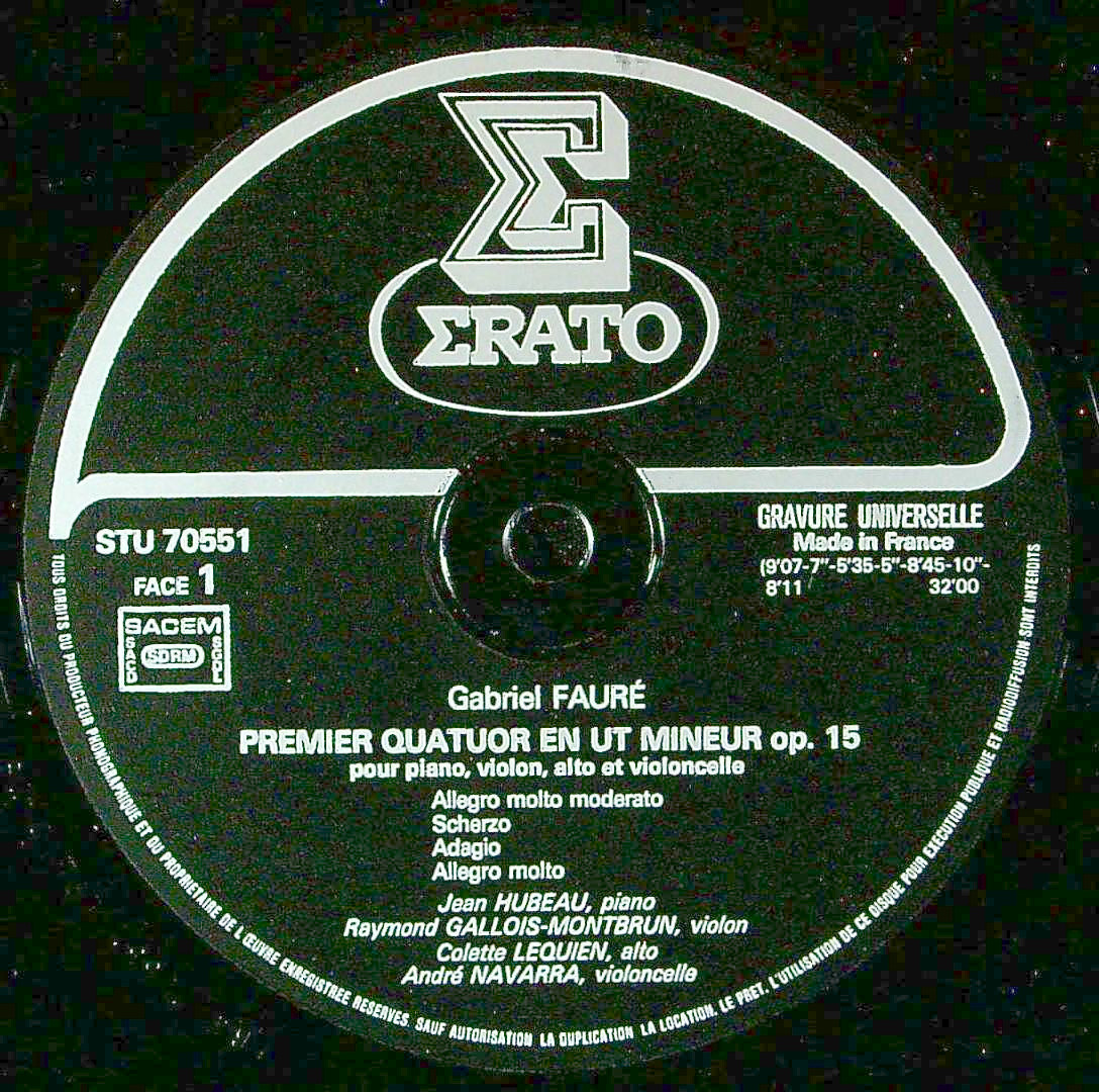 商品コード:1376-049b[ERATO] J.ユボー(pf) R.ガロワ・モンブラン(vn) C.ルキアン(va) A.ナヴァラ(vc) 他/ フォーレ:Pf四重奏曲1番, 弦楽四重奏曲