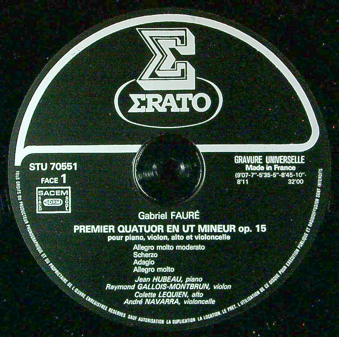 商品コード:1376-049[ERATO] J.ユボー(pf) R.ガロワ・モンブラン(vn) C.ルキアン(va) A.ナヴァラ(vc) 他/ フォーレ:Pf四重奏曲1番, 弦楽四重奏曲