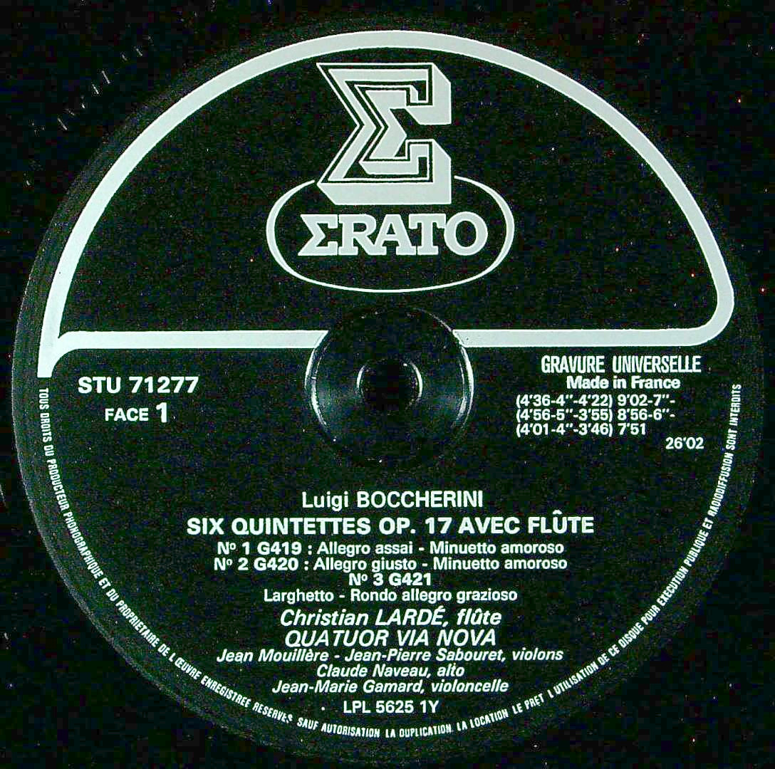 商品コード:1376-047[ERATO] C.ラルデ(fl) ヴィア・ノヴァQt. / ボッケリーニ:6つのFl五重奏曲Op.17