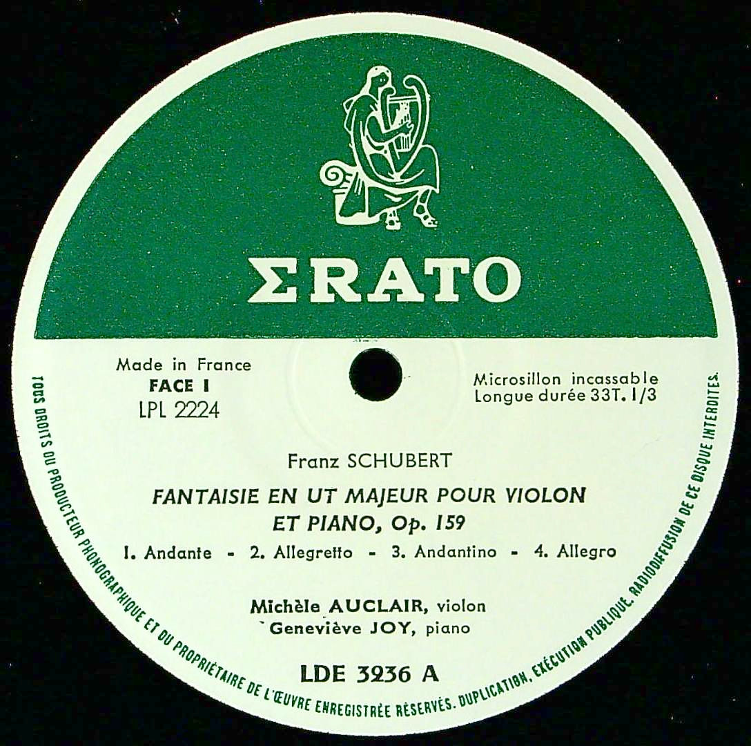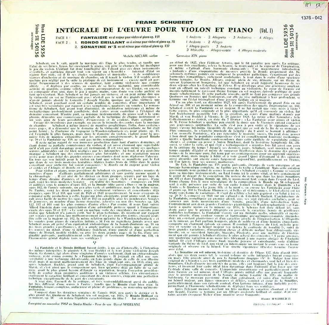 商品コード:1376-042p[ERATO] M.オークレール(vn)/ シューベルト:VnとPfのための作品集Vol.1/幻想曲D.934, 華麗なロンドD.895, ソナチネ3番D.408