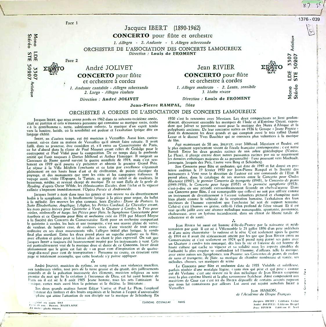 商品コード:1376-039p[ERATO] J.P.ランパル(fl)/ 近代フランスFl協奏曲集/イベール, ジョリヴェ, J.リヴィエ