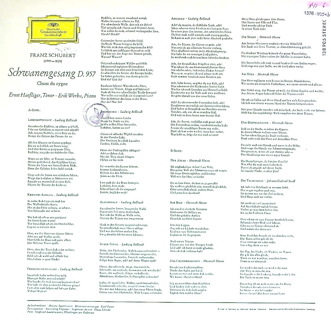 商品コード:1376-035tb[DGG] E.ヘフリガー(t)/ シューベルト:歌曲集「白鳥の歌」D.957/D.965a(全14曲)
