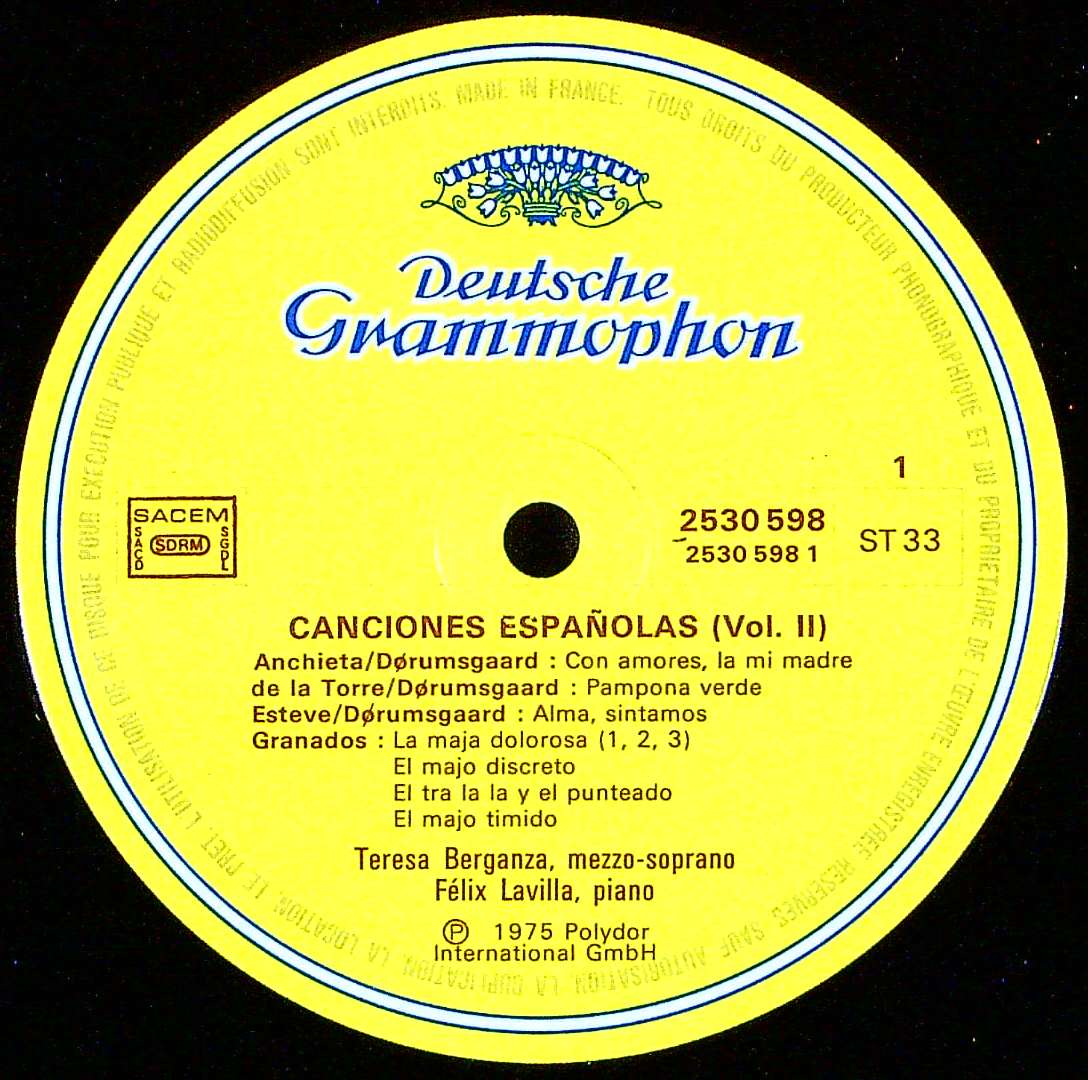 商品詳細:テレサ・ベルガンサ(1935-2022)はスペイン、マドリード生まれのメゾ・ソプラノ。同地のマドリード音楽院でピアノと声楽を学び、1954年に歌唱で1等賞を得ている。1955年にマドリードで初めての演奏会を開いた。1957年エクス=アン=プロヴァンス音楽祭で『コジ・ファン・トゥッテ』(モーツァルト)のドラベッラ役を歌ってオペラの初舞台を踏んだ。グラインドボーン音楽祭、ロイヤル・オペラ・ハウス、メトロポリタン歌劇場と多くの大舞台でモーツァルトを歌い、モーツァルト歌手として知られる。オペラのほか歌曲も得意とした。彼女の演奏会の主要レパートリーはスペイン、フランス、ドイツ、ロシア歌曲である。彼女はピアニストのフェリックス・ラビージャと結婚し、多くの演奏会を開くとともに多数のレコード録音を行った。1992年、彼女はセビリア万国博覧会の開会式に参加し、さらにバルセロナ・オリンピックの開会式でも歌った。実に息の長い芸歴を持つ。1970年代には夫・ラヴィージャとDGGの歌曲集を録音している。一度聴いたら忘れない特徴的な声質は多くの人に好まれている。この録音時39歳だが、若い頃のように声にはツヤがあり、表現力だけでなく歌が持つ背景までも描き出す才能を持っている。器楽奏者と異なり歌手は年齢を重ねるごとにより深みのある表現力を身に着けてゆく。これは1975年3月ドイツで録音されたスペイン歌曲-2。但し曲を聴くというよりベルガンサの歌を聴くという方が正しいだろう。ベルガンサは何を歌ってもすぐにそれとわかる特徴ある声であり、世界的に人気が高い。1953年からスペインのAlhambraに録音を開始、1959年にはDECCAと契約し、1960年代後期まで多くの名録音を残した。1971年からDGGに移籍し1979年まで多くの録音を残した。ベルガンサはDGGに歌曲集を4枚残している。それぞれにタイトルがあり、「スペイン歌曲集-1」がイエペス(gt)の伴奏で2530 504(1974年発売)、「スペイン歌曲集-2」がF.ラヴィーシャ(pf)の伴奏で2530 598(1975年発売)、「人気のスペイン歌曲集」がイエペス(gt)の伴奏で2530 875(1977年発売)、「イタリア・バロック・アリア集」がR.レケホ(pf))の伴奏で2531 192(1979年発売)である。内スペイン歌曲集は3枚だけだが、タイトルと伴奏形式が一致しないので混同しないように注意する必要となる。スペイン歌曲集-1とスペイン歌曲集-2は伴奏楽器が異なるので勘違いしやすい。DGGにおける器楽伴奏の歌曲集はこの4枚が全てと思われる。他はオケ付き作品となる。これは4枚の中で2番目に発売された「スペイン歌曲集-2」で、夫であるフェリック・ラヴィーシャのピアノ伴奏。スペイン歌曲集-1が中世・ルネッサンス期のスペイン歌曲集であったのに対し、こちらは1400-1911年の中世から近代までの幅広いスペイン系の歌曲集である。その為ピアノ伴奏としたのだろう。意外な程しんみりと暗調な曲が多く、底抜けに明るい作品たちではない。「スペイン歌曲集-1」とは大きく趣が異なるLPである。どちらもベルガンサ・ファンには大切な1枚となるだろう。尚ピアノのラヴィーシャはこれまでラヴィリャとした時期があるがラヴィーシャが正しいことが判明した。