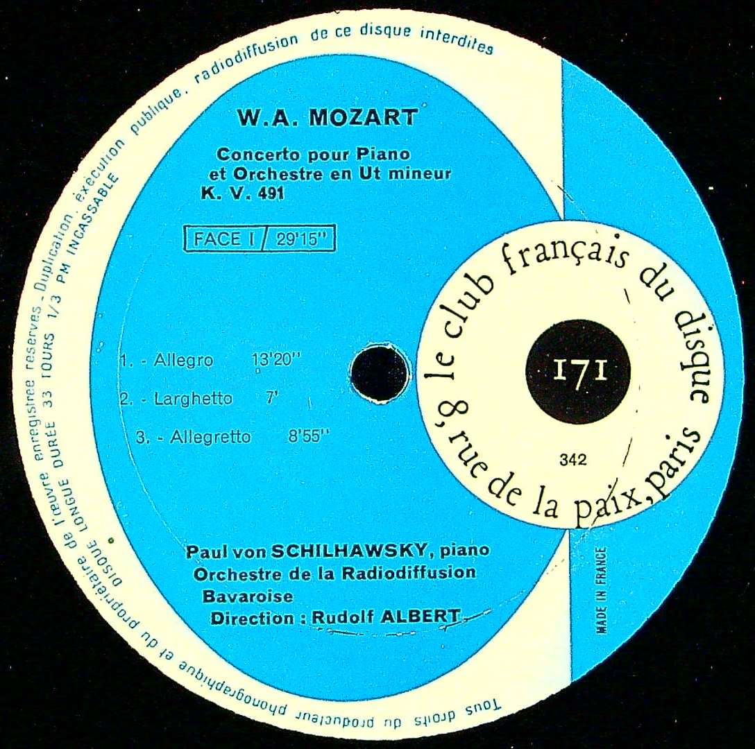 商品コード:1376-018pb[Club Français] P.v.シルハフスキー(pf)/ モーツァルト:Pf協奏曲24番K.491, 18番K.456