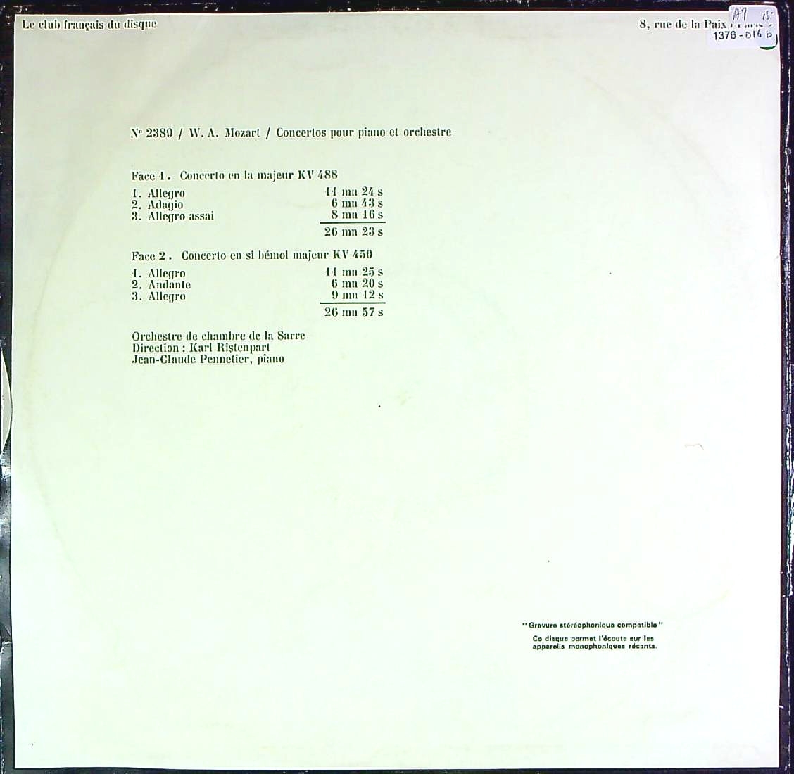 商品コード:1376-016b[Club Français] J.C.ペヌティエ(pf)/ モーツァルト:Pf協奏曲23番K.488, 15番K.450