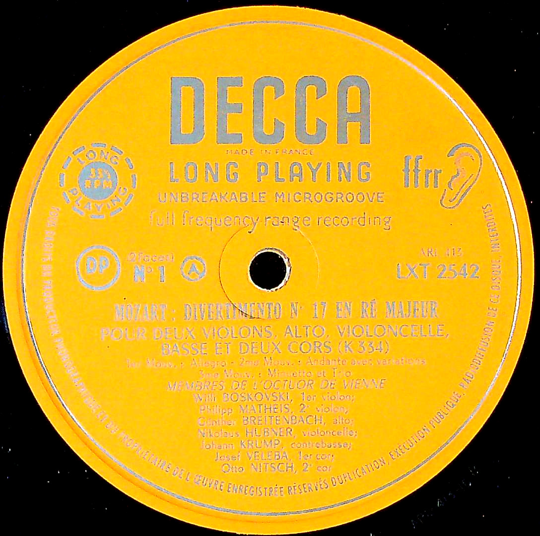 商品コード:1376-013pb[DECCA] ウィーン八重奏団のメンバー(W.ボスコフス 他) / モーツァルト:ディヴェルティメント17番K.334