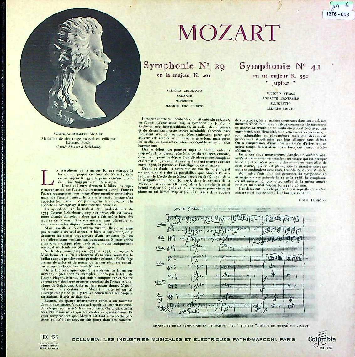商品コード:1376-008p[COLUMBIA] O.クレンペラー/ モーツァルト:交響曲29番K.201, 41番K.551「ジュピター」