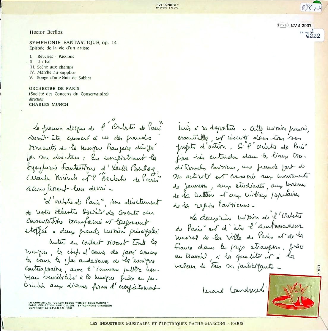 商品コード:REG-4222[仏VSM] C.ミュンシュ/ ベルリオーズ:幻想交響曲Op.14