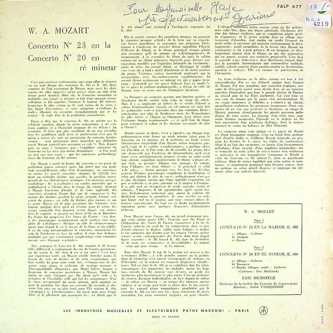 商品コード:REG-4219[仏VSM] E.ハイドシェック(pf)/ モーツァルト:Pf協奏曲23番K.488, 20番K.466