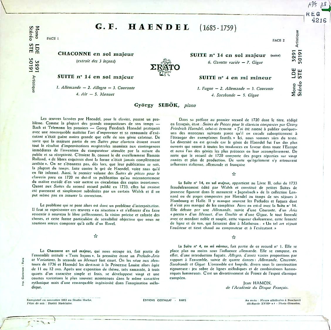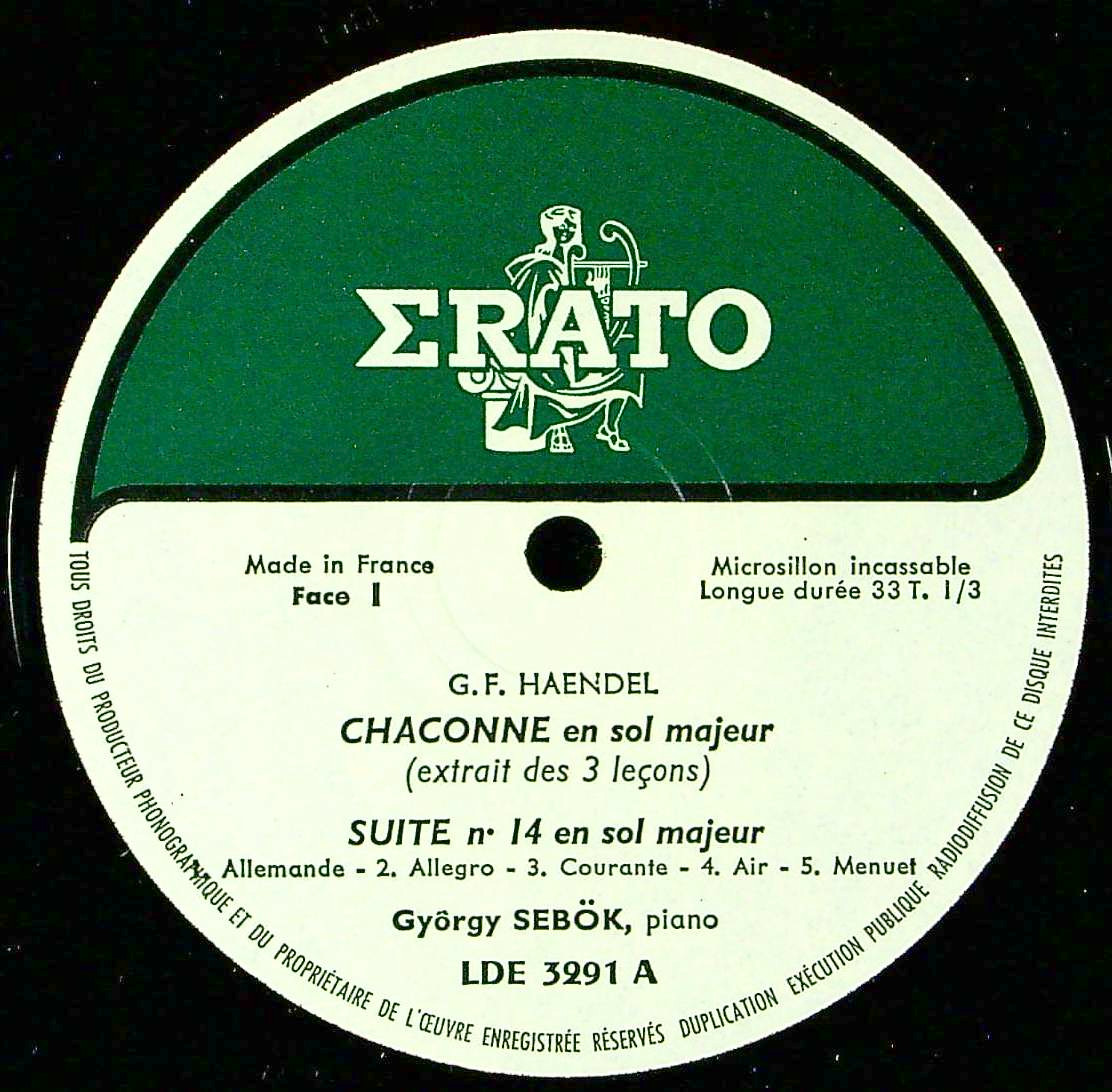 商品コード:REG-4216[仏ERATO] G.シェベーク(pf) / ヘンデル:シャコンヌHWV435, Cemb組曲第2集14番HWV441, 第1集4番HWV429