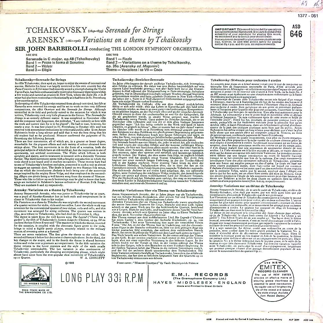 商品コード:1377-061[HMV ] J.バルビローリ/ チャイコフスキー:弦楽合奏のセレナーデ, アレンスキー:チャイコフスキーの主題による変奏曲,