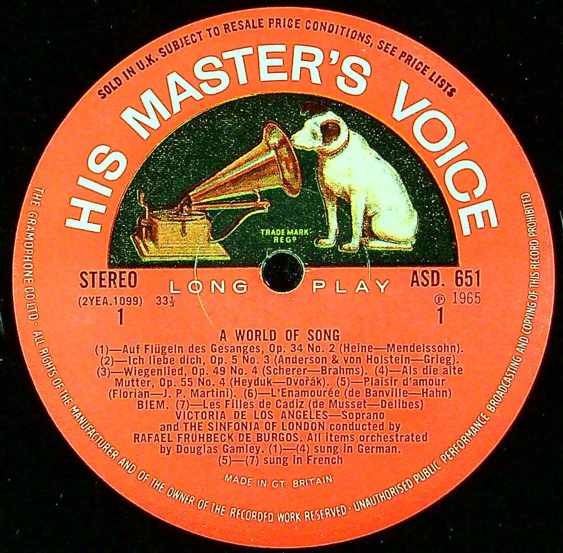 商品コード:1377-059[HMV] V.d.ロス・アンヘレス(s)/ 歌曲集/メンデルスゾーン, グリーグ, ブラームス, ドヴォルザーク, マルティーニ, アーン, ドリーブ 他