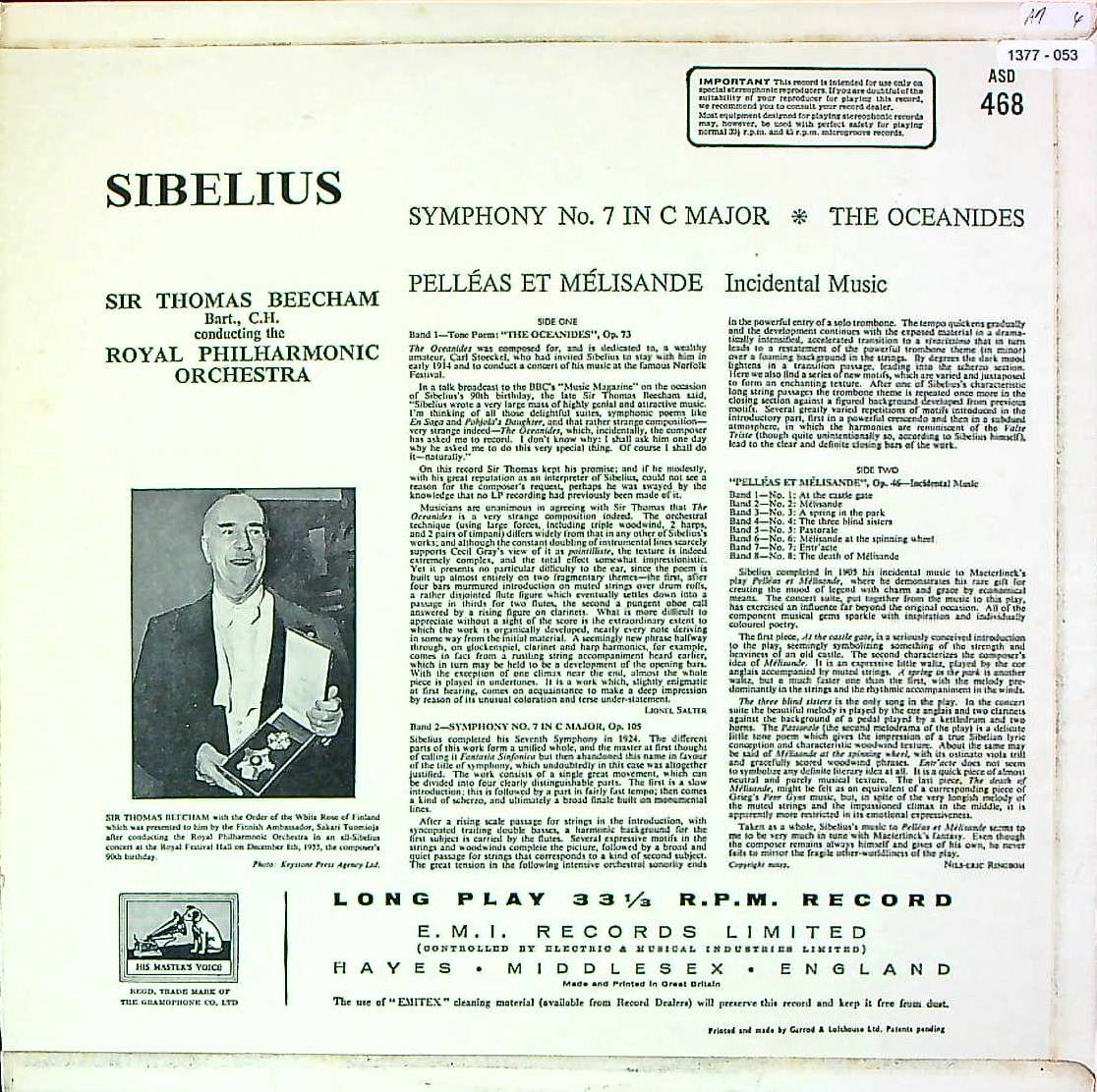 商品コード:1377-053[HMV] T.ビーチャム/ シベリウス:海の精Op.73, 交響曲7番Op.105, ペレアスとメリザンド」Op.46