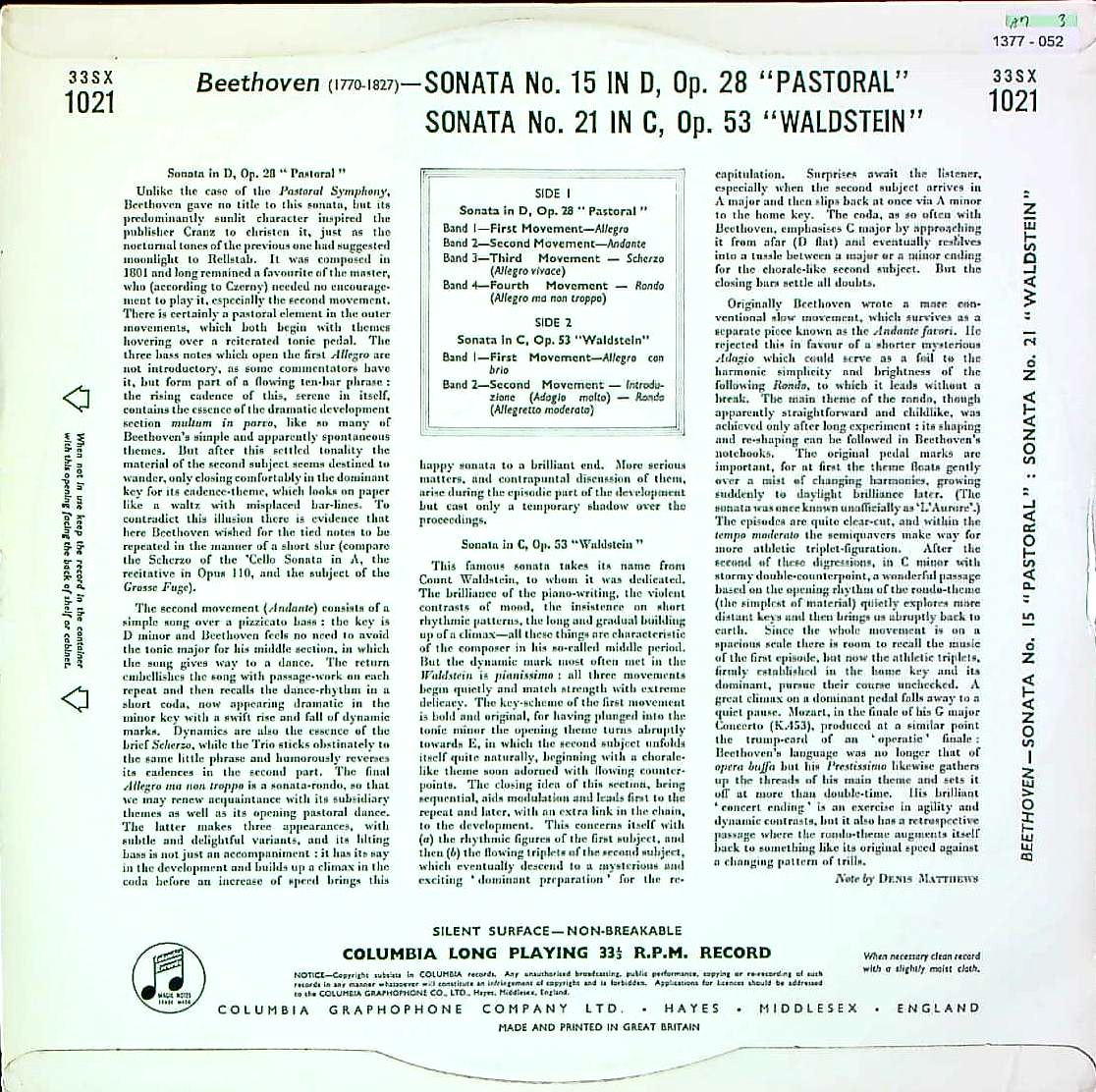 商品コード:1377-052p[COLUMBIA] D.マシューズ(pf) / ベートーヴェン:Pfソナタ15番「田園」, 21番3「ワルトシュタイン」