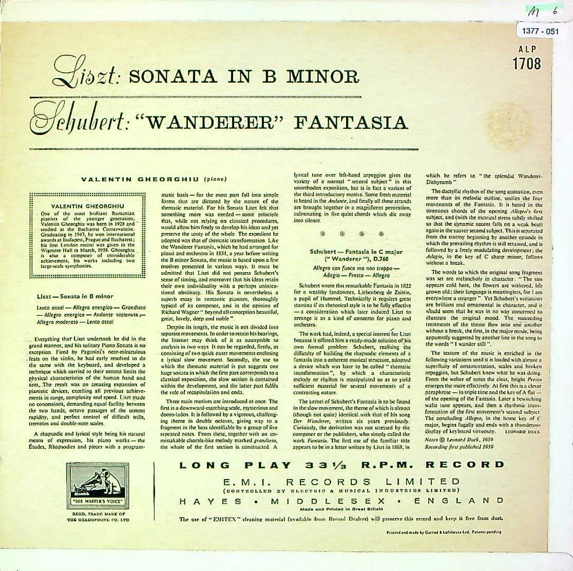 商品コード:1377-051p[HMV] V.ゲオルギウ(pf) / リスト:Pfソナタロ短調 S.178, シューベルト:さすらい人幻想曲Op.15 D.760