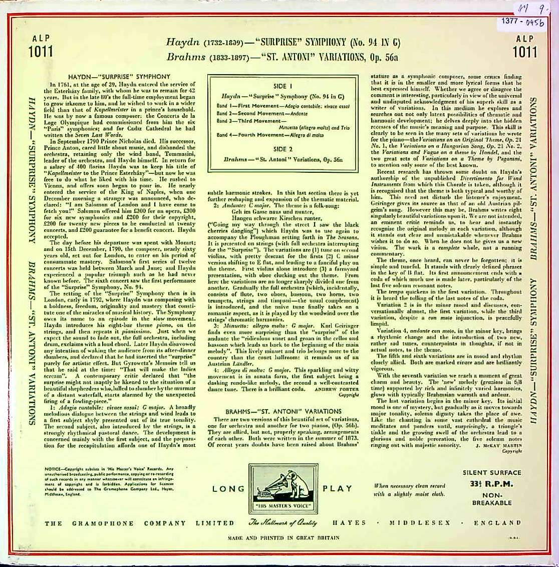 商品コード:1377-045b[HMV] W.フルトヴェングラー/ ハイドン:交響曲94番「驚愕」, ブラームス:ハイドン変奏曲