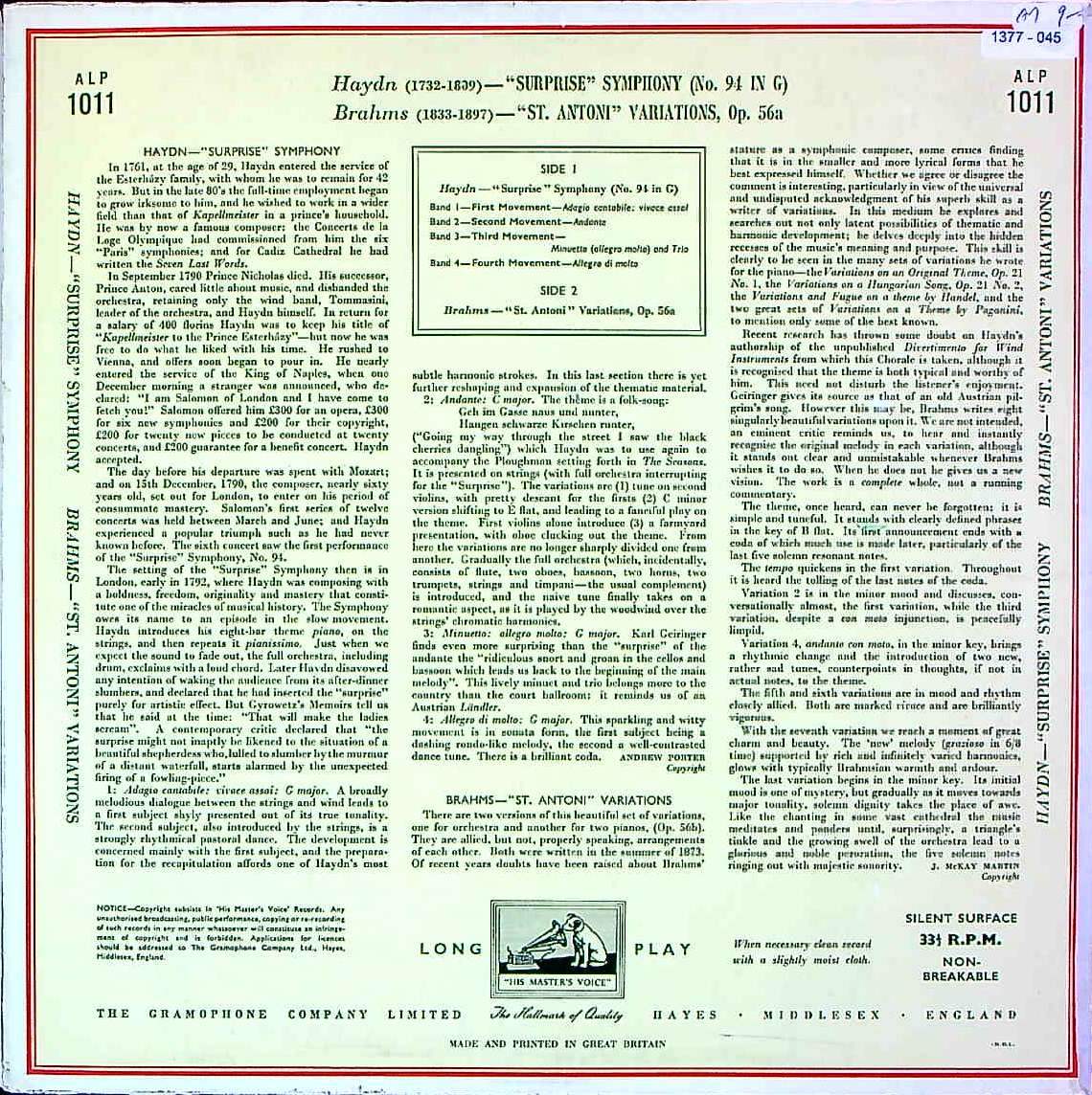 商品コード:1377-045[HMV] W.フルトヴェングラー/ ハイドン:交響曲94番「驚愕」, ブラームス:ハイドン変奏曲
