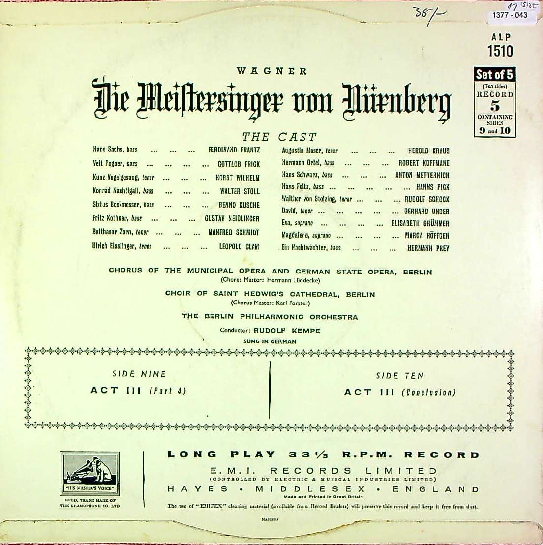 商品コード:1377-043[HMV] R.ケンペ/ ワーグナー:「ニュルンベルクのマイスタージンガー」(全曲)(バラセット完結)