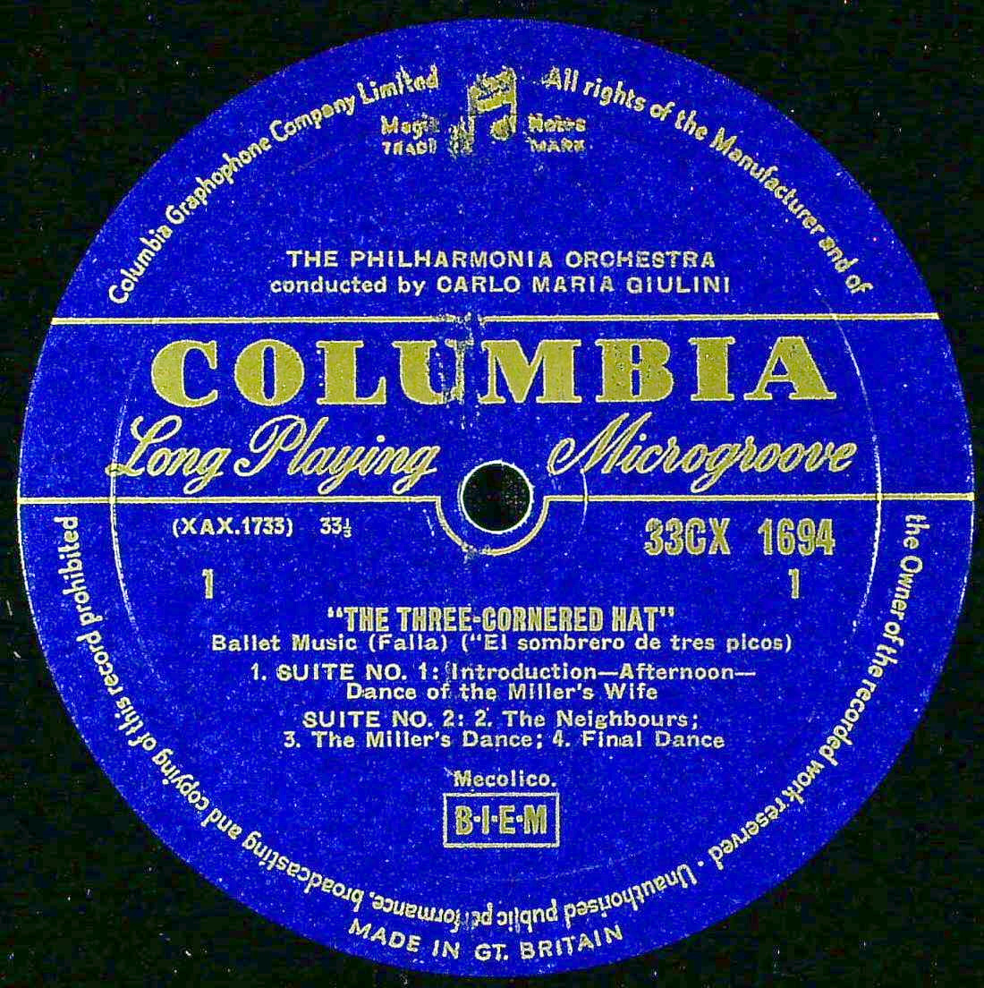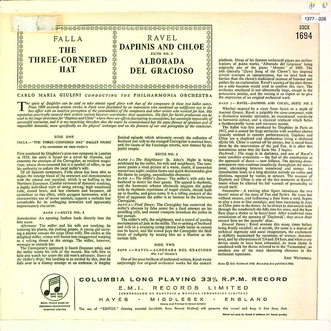商品コード:1377-028n[COLUMBIA] C.M.ジュリーニ/ ファリャ:三角帽子「第1・2組曲」, ラヴェル:道化師の朝の歌 他